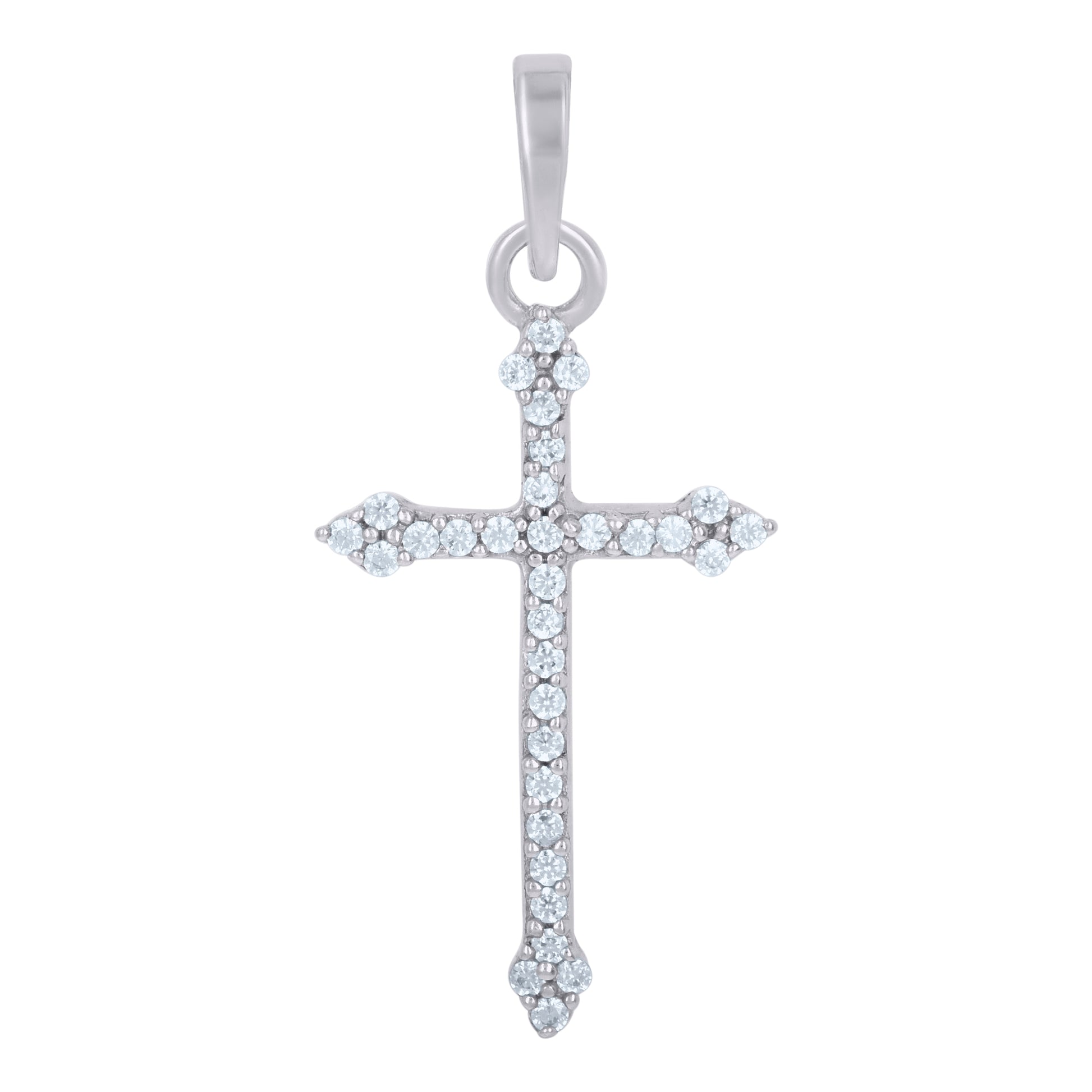 925 Sterling Silver Unisex Cubic-Zirconia Cross Religious Charm Pendant