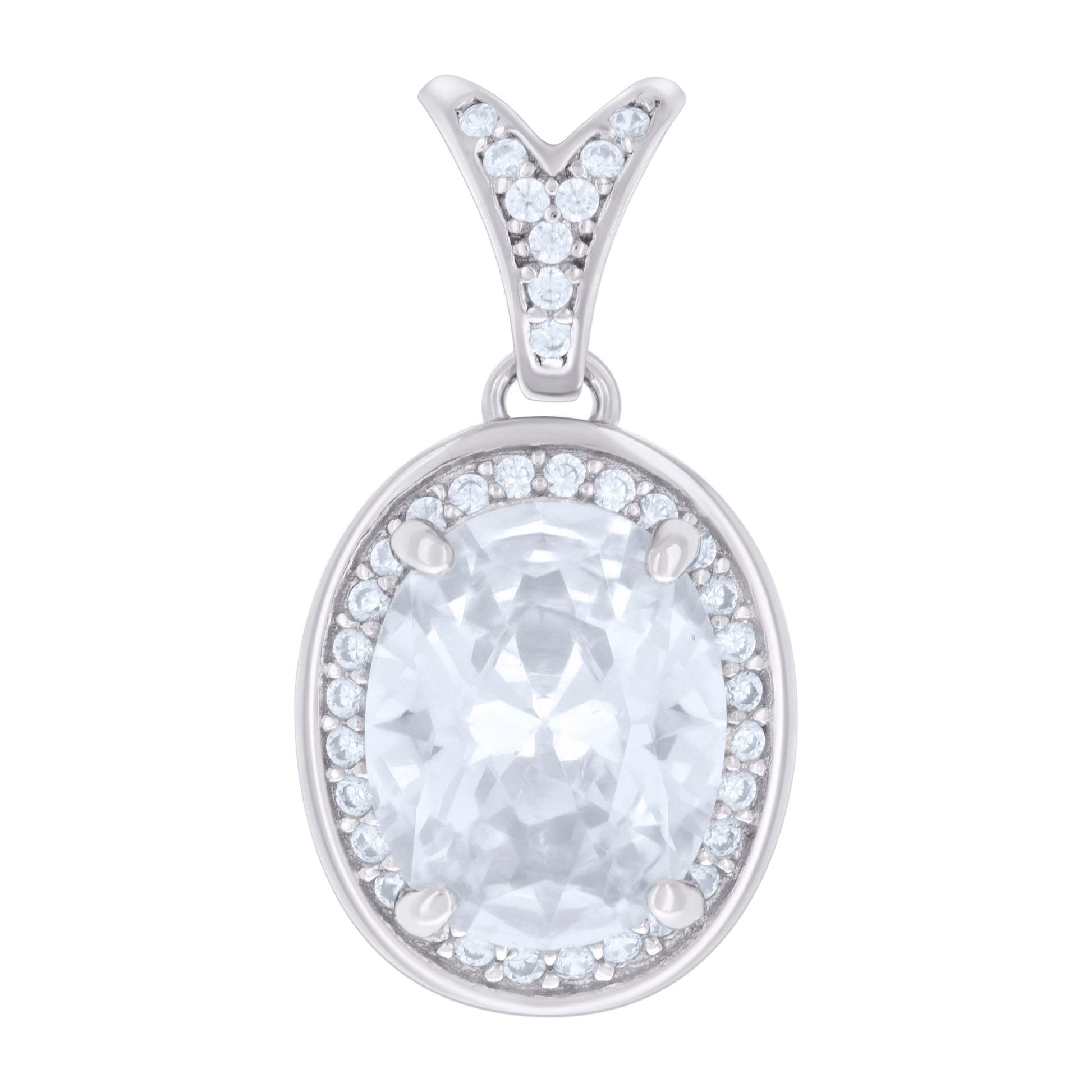 925 Sterling Silver Womens Oval Round Cubic-Zirconia Fashion Charm Pendant
