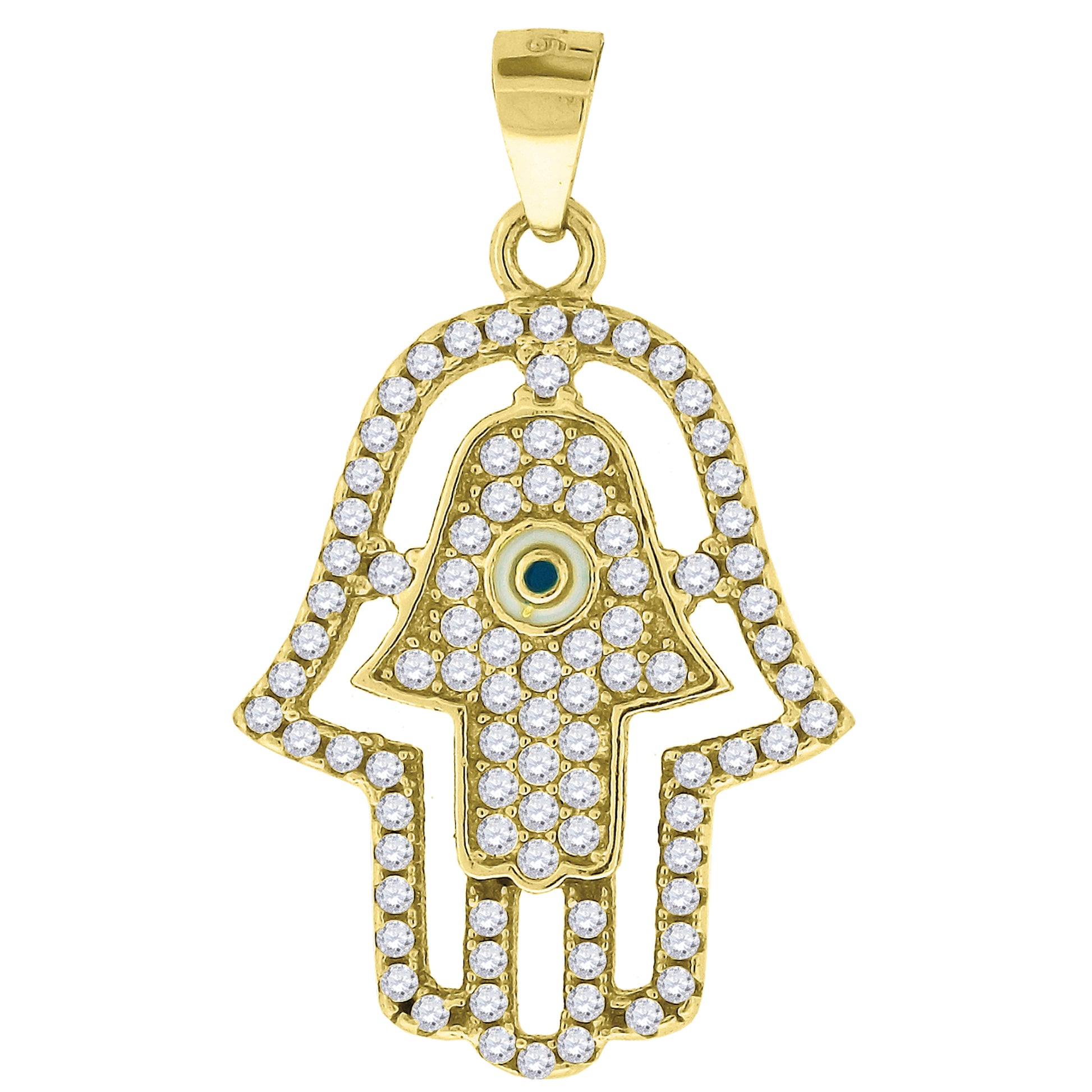 925 Sterling Silver Yellow-Tone Mens Cubic Zirconia Humsa Religious Charm Pendant