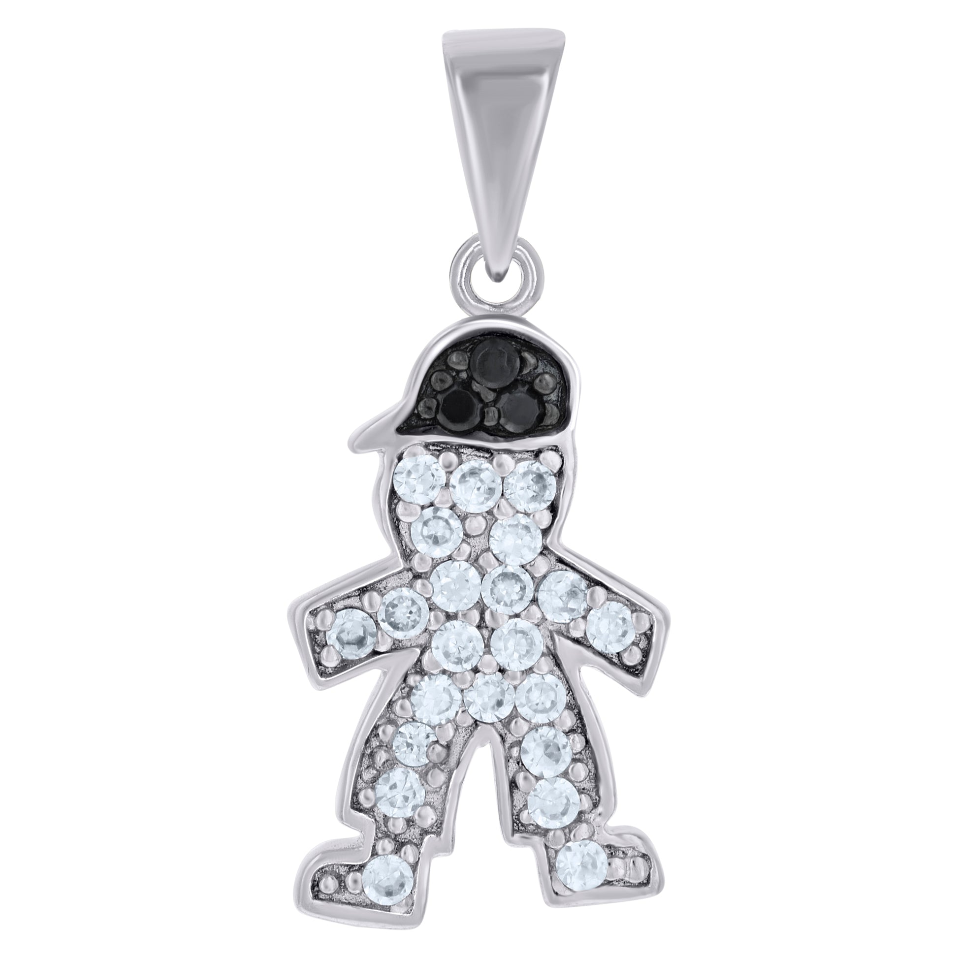 925 Sterling Silver Black-tone Mens Black White Cubic-Zirconia Baby Boy Fashion Charm Pendant