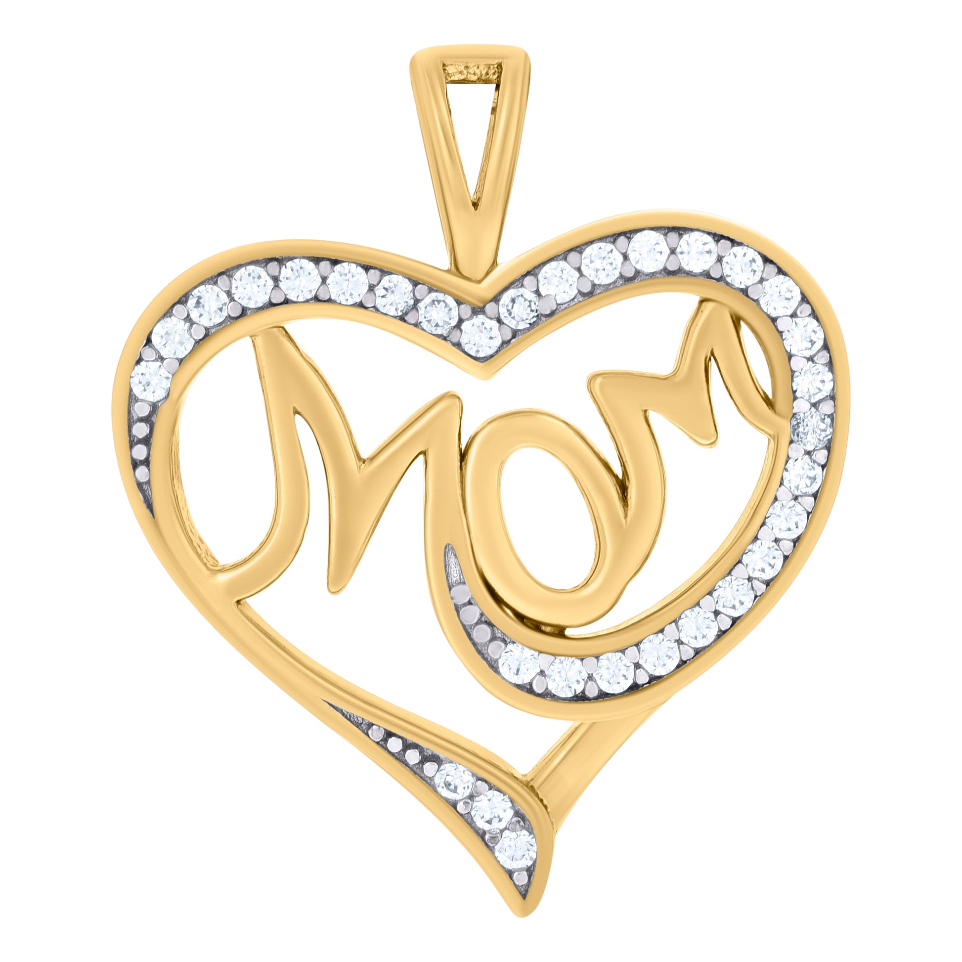 925 Sterling Silver Yellow-tone Womens Cubic-Zirconia Heart Mom Charm Pendant