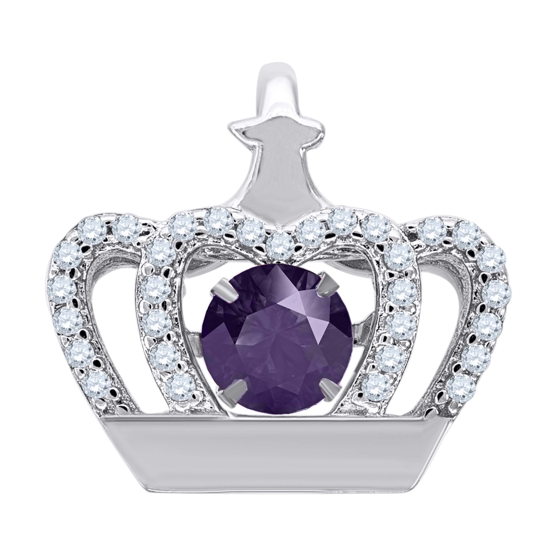 925 Sterling Silver Womens Purple White Cubic-Zirconia Crown Fashion Charm Pendant