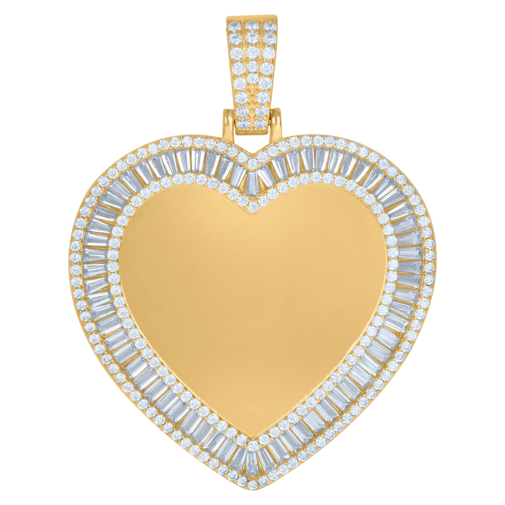 925 Sterling Silver Yellow-Tone Womens Round Baguette Cubic-Zirconia Heart Picture/Memory Frame Charm Pendant