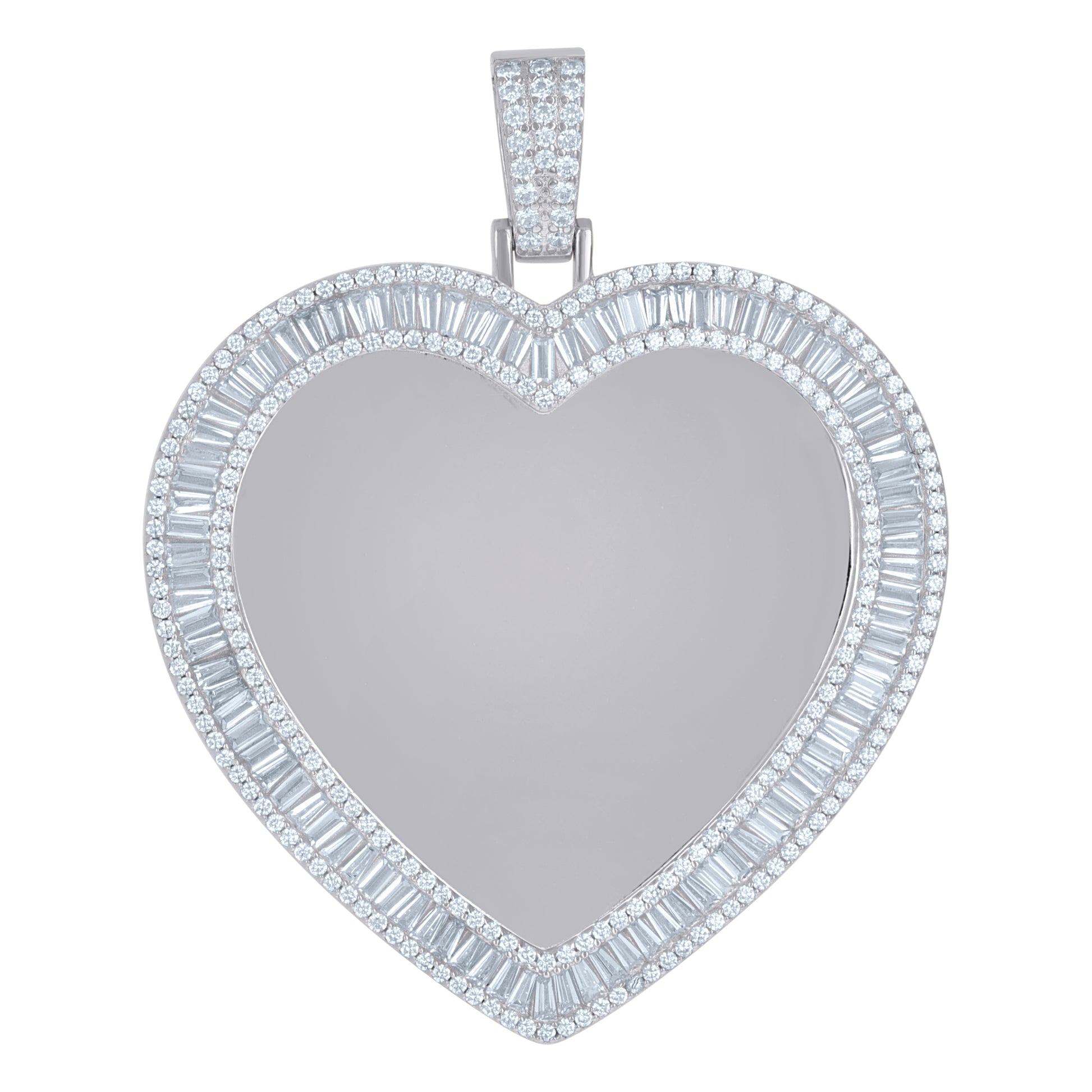 925 Sterling Silver Womens Round Baguette Cubic-Zirconia Heart Picture/Memory Frame Charm Pendant