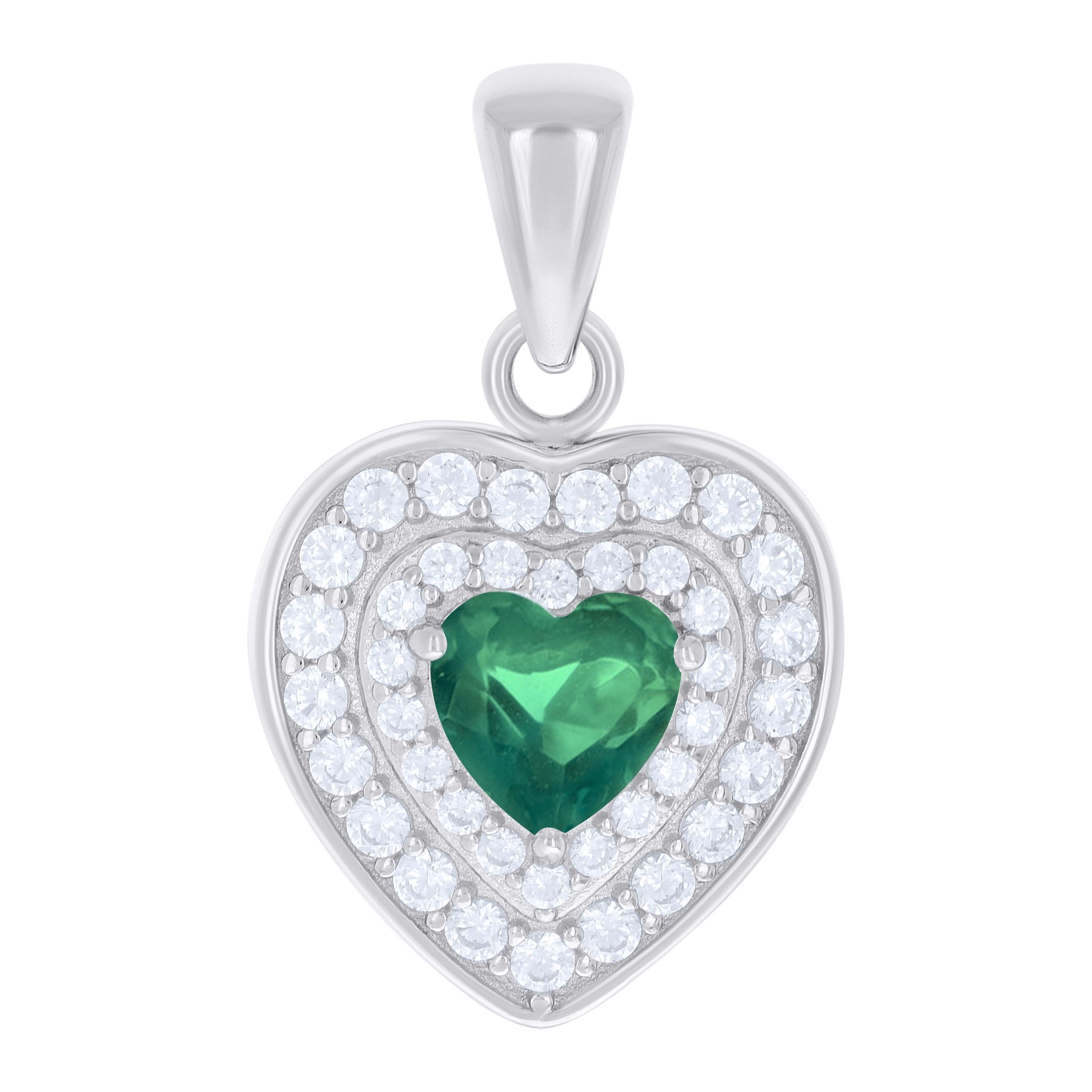 925 Sterling Silver Womens Green White Heart Round Cubic-Zirconia Heart Charm Pendant