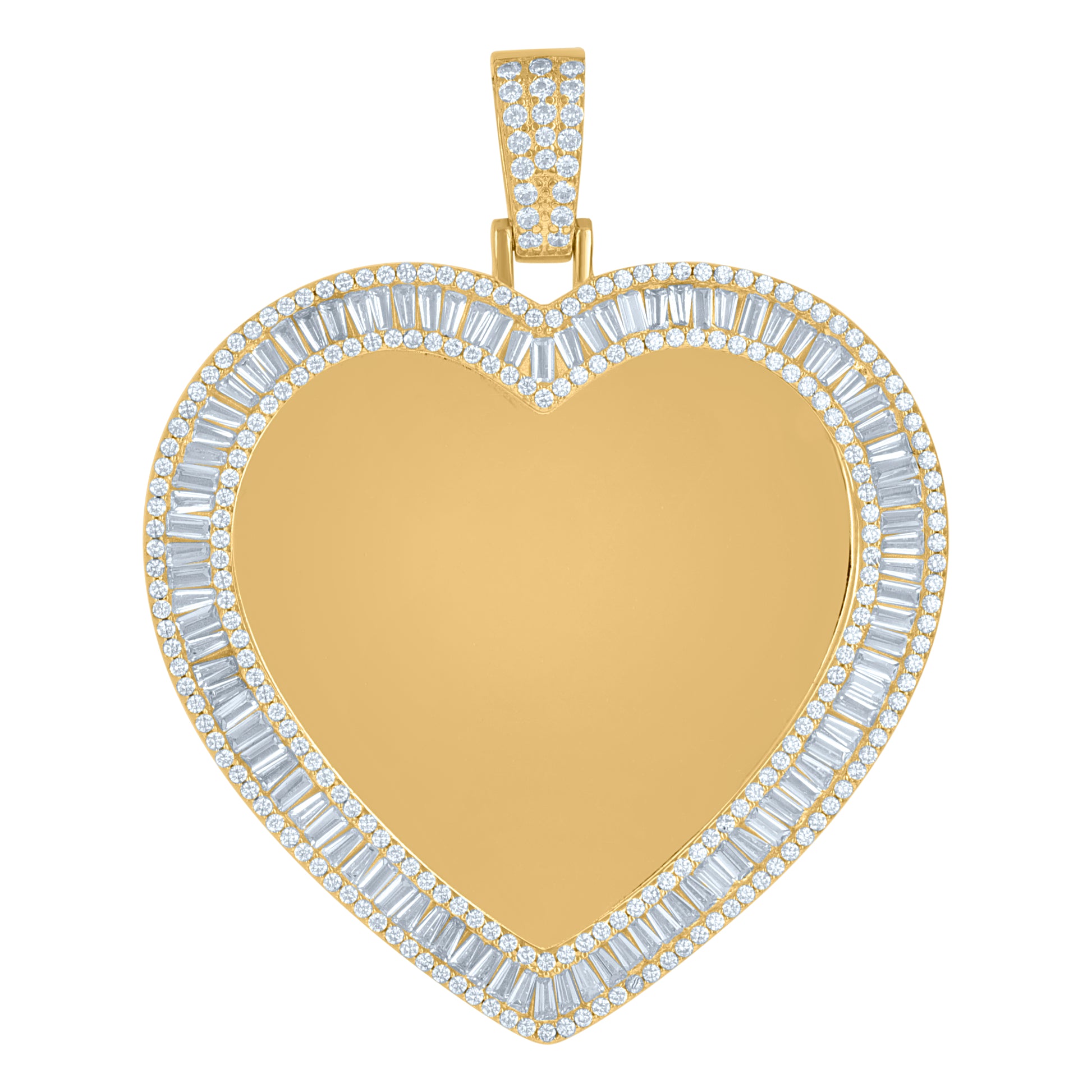 925 Sterling Silver Yellow-Tone Womens Round Baguette Cubic-Zirconia Heart Picture/Memory Frame Charm Pendant