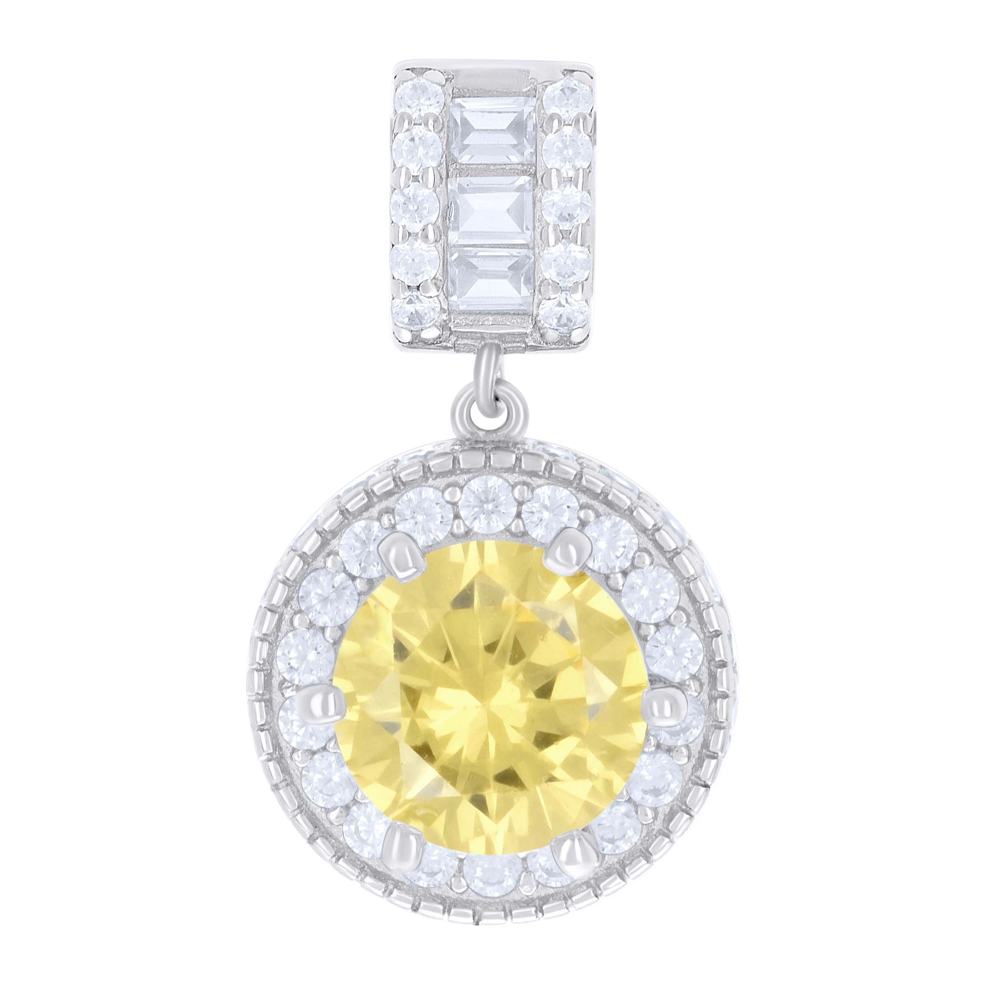 925 Sterling Silver Womens Yellow White Baguette Round Cubic-Zirconia Fashion Charm Pendant