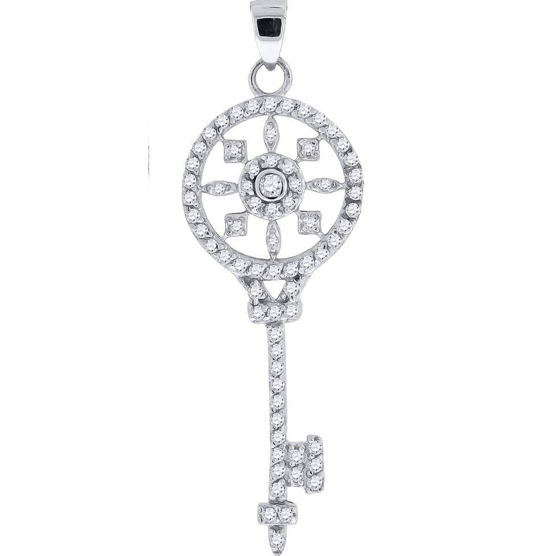 925 Sterling Silver Mens Cubic Zirconia Key Charm Pendant
