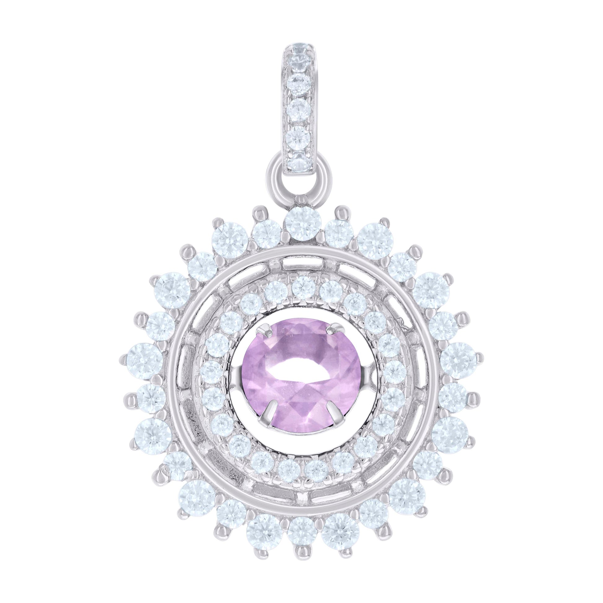 925 Sterling Silver Womens White Pink Cubic-Zirconia Fashion Pendant
