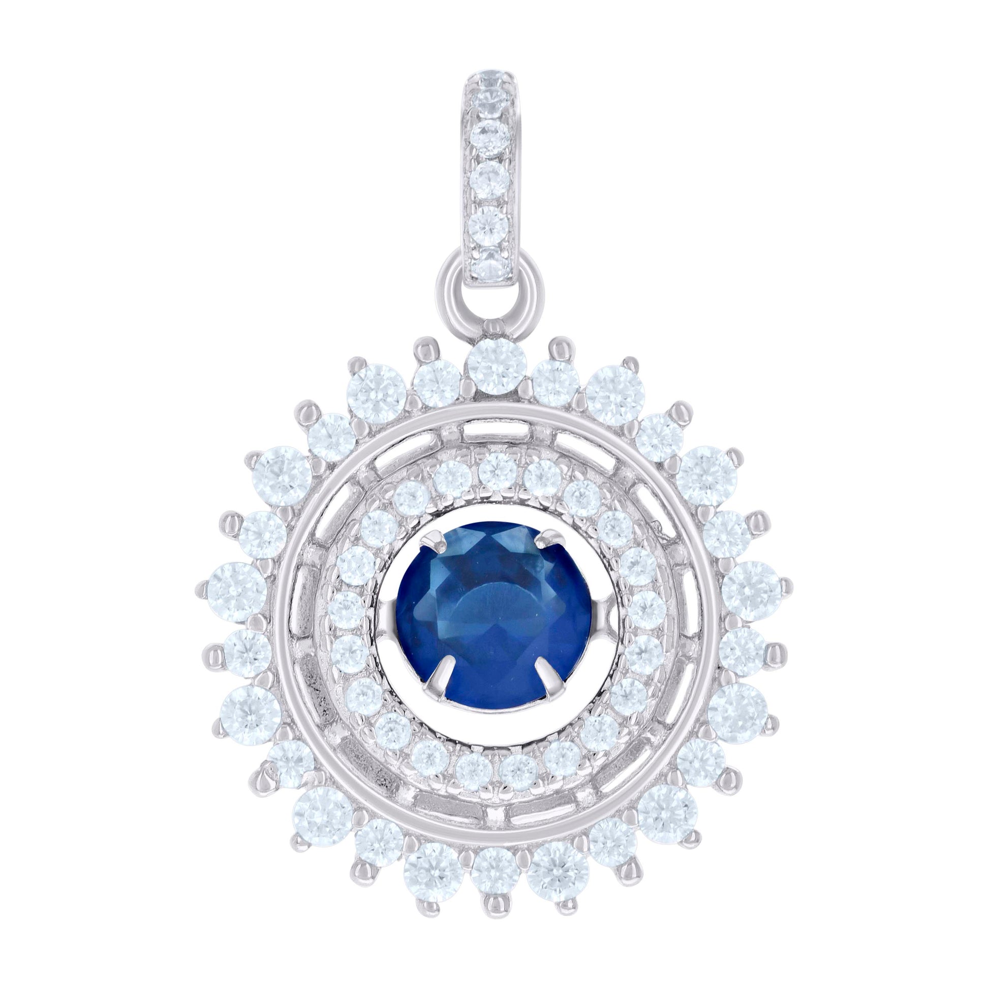 925 Sterling Silver Womens White Blue Cubic-Zirconia Fashion Pendant