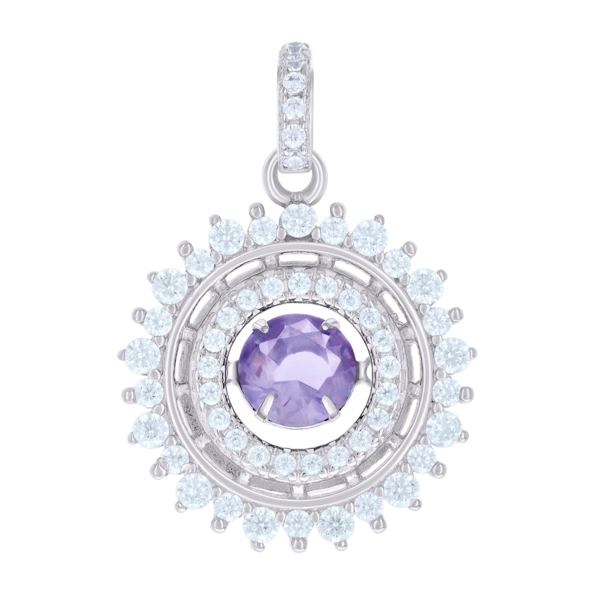 925 Sterling Silver Womens White Purple Cubic-Zirconia Fashion Pendant