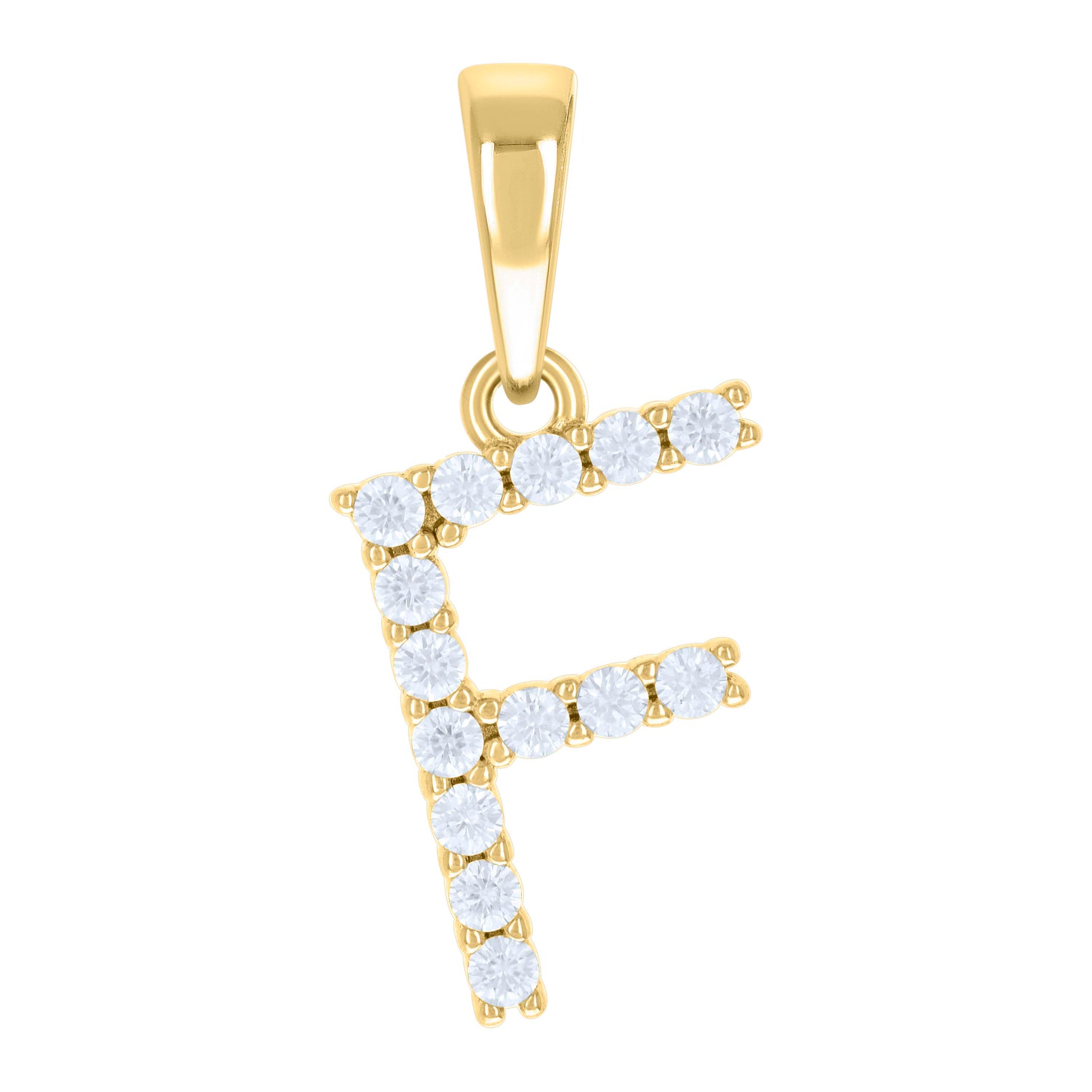 925 Sterling Silver Yellow-tone Unisex Cubic-Zirconia Initial F Alphabet Charm Pendant