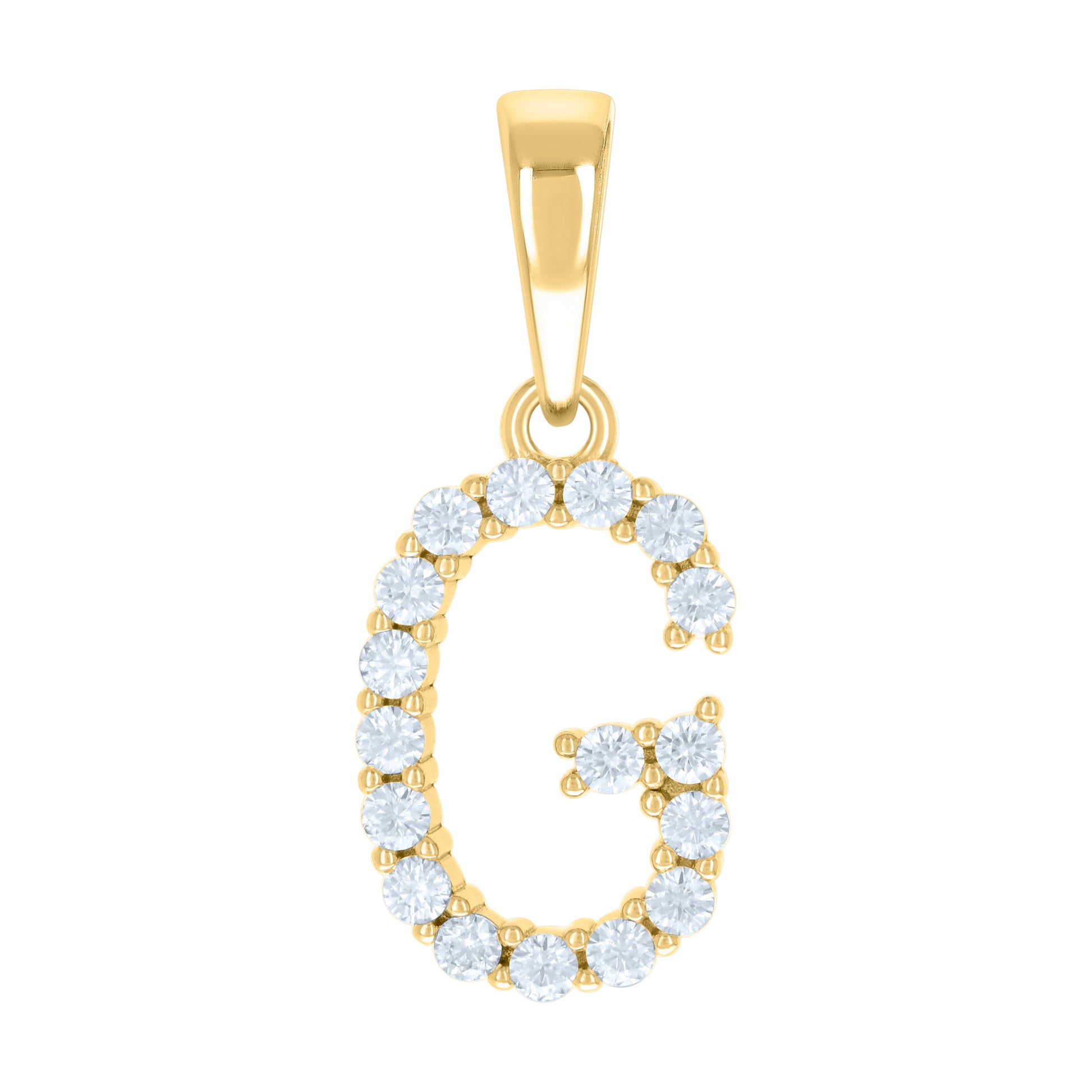 925 Sterling Silver Yellow-tone Unisex Cubic-Zirconia Initial G Alphabet Charm Pendant