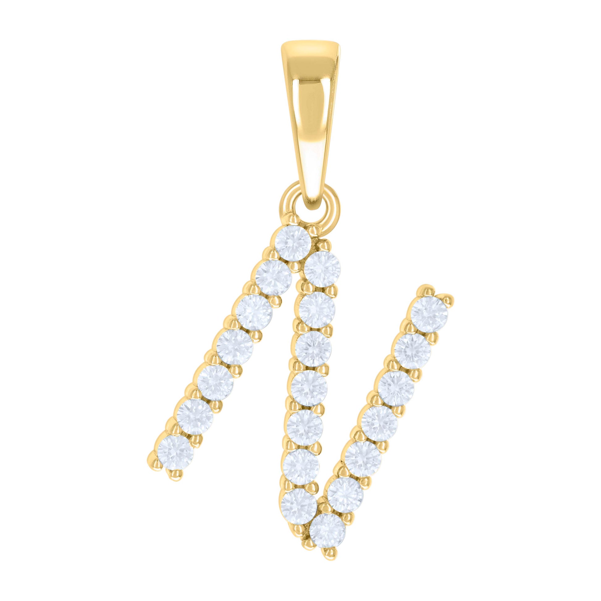 925 Sterling Silver Yellow-tone Unisex Cubic-Zirconia Initial N Alphabet Charm Pendant