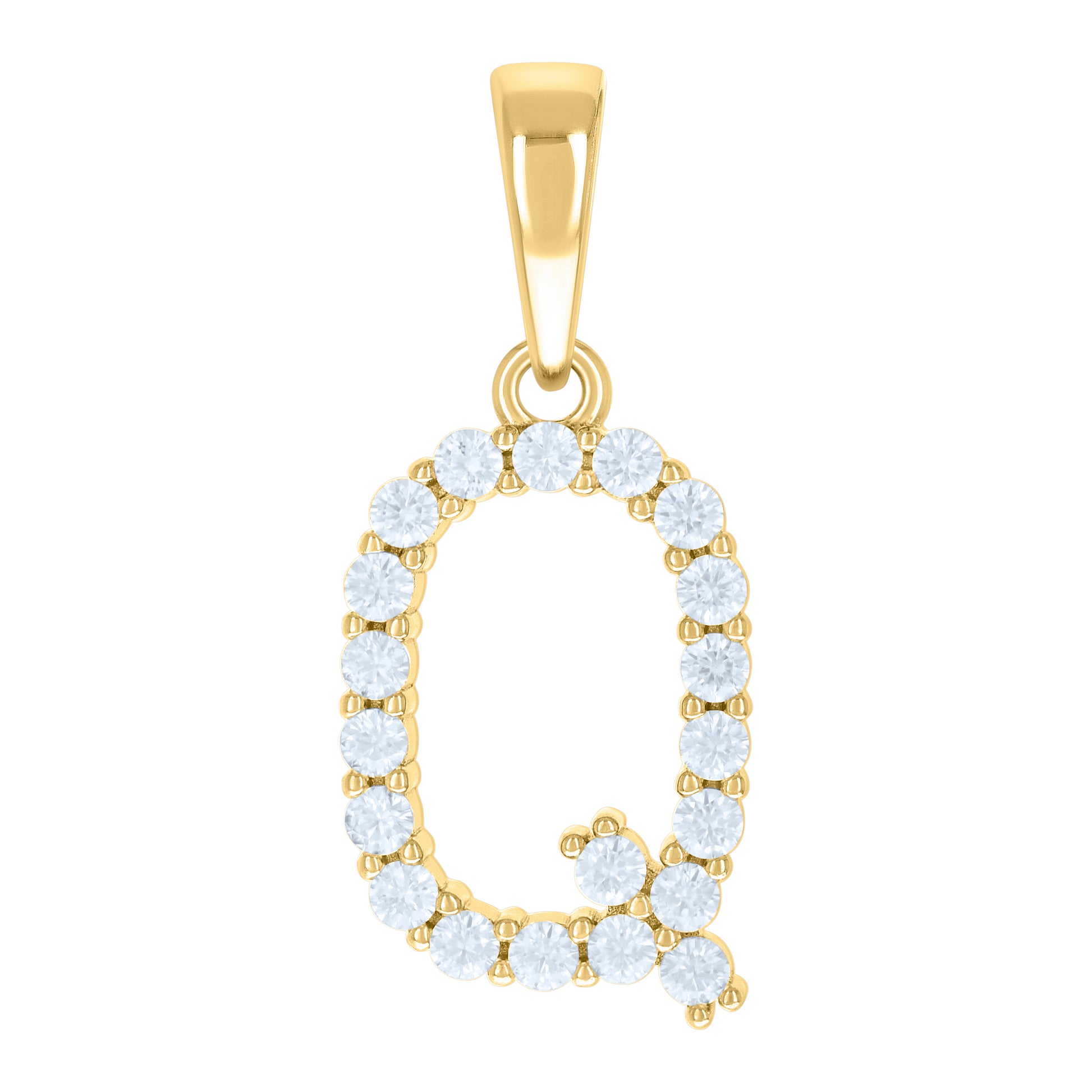 925 Sterling Silver Yellow-tone Unisex Cubic-Zirconia Initial Q Alphabet Charm Pendant