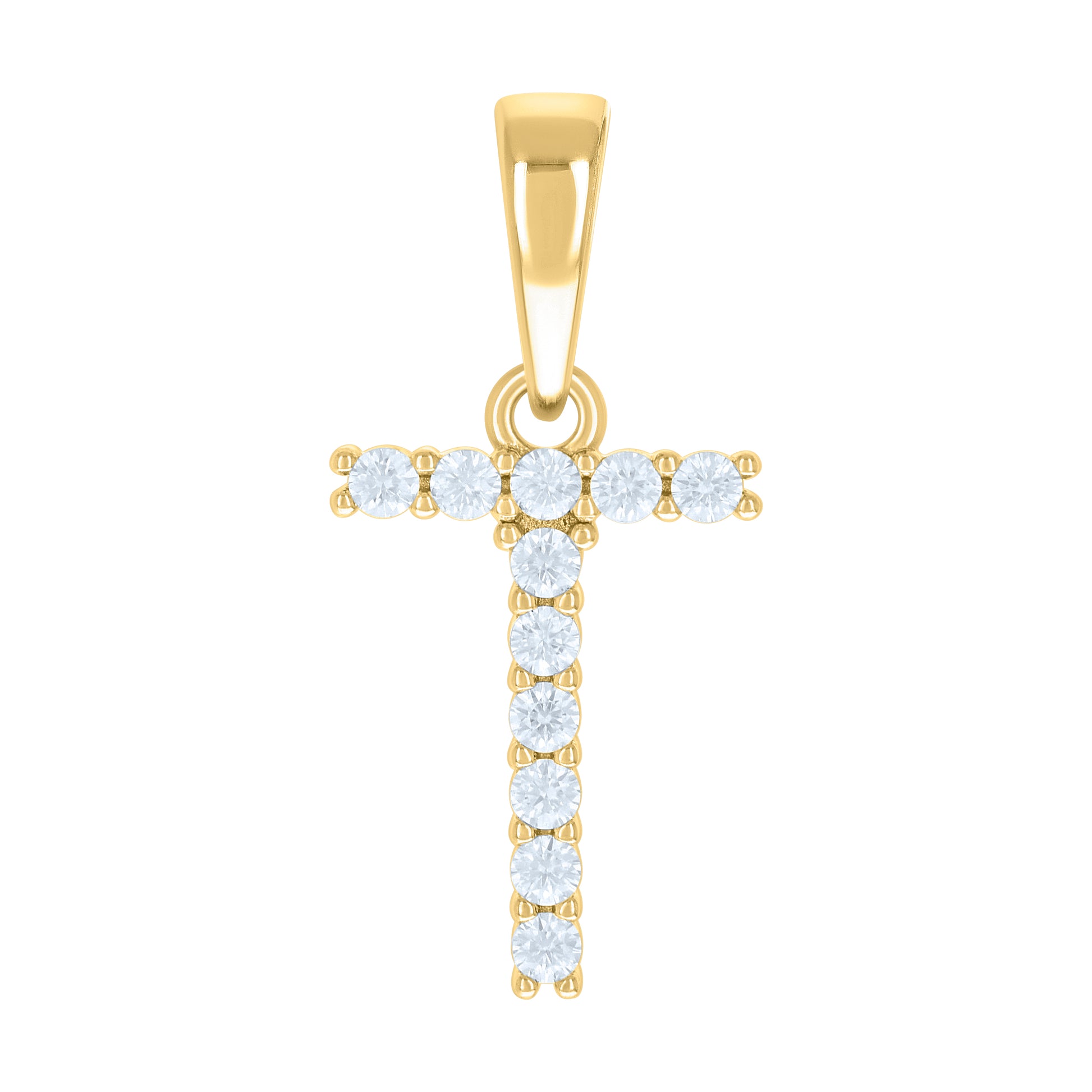 925 Sterling Silver Yellow-tone Unisex Cubic-Zirconia Initial T Alphabet Charm Pendant