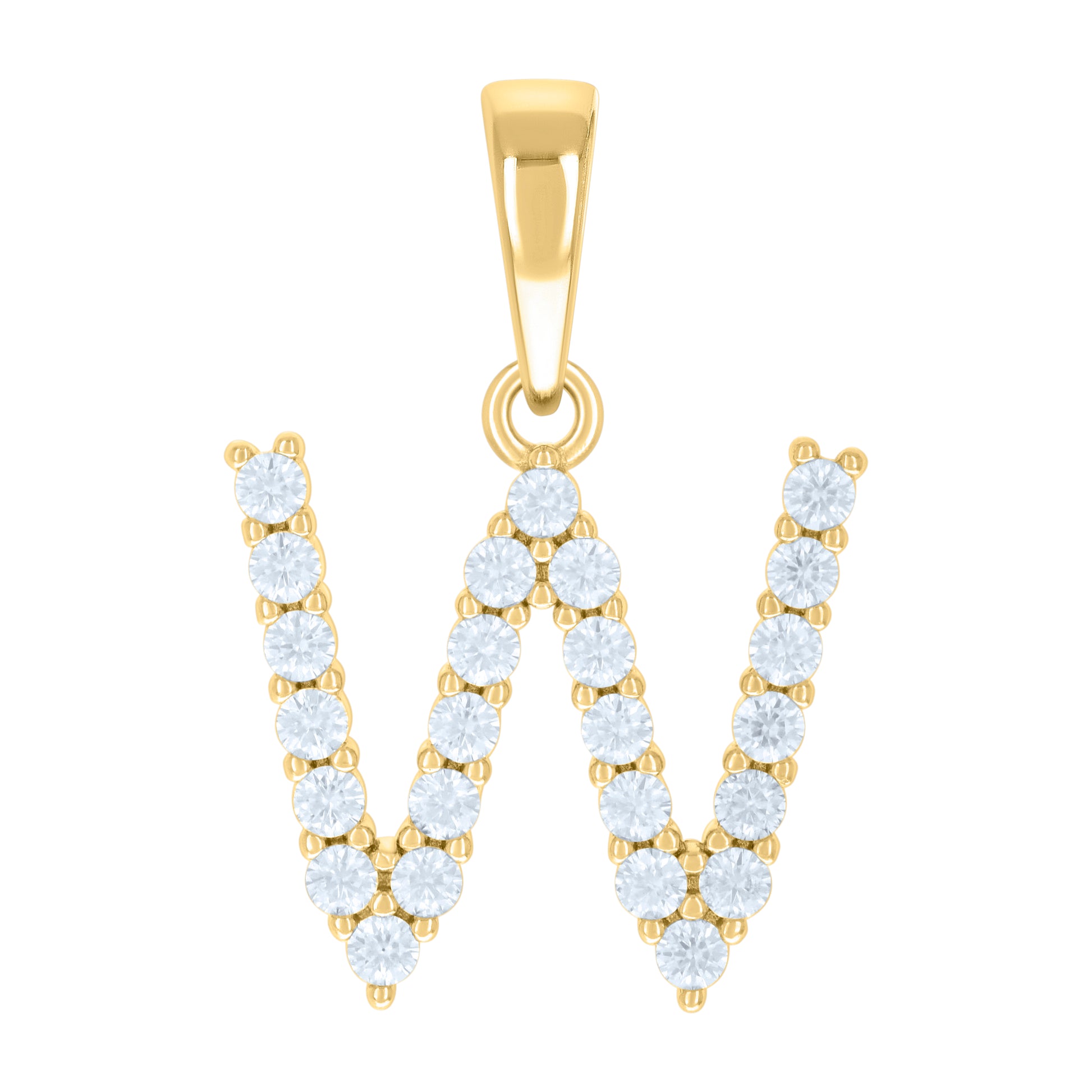 925 Sterling Silver Yellow-tone Unisex Cubic-Zirconia Initial W Alphabet Charm Pendant