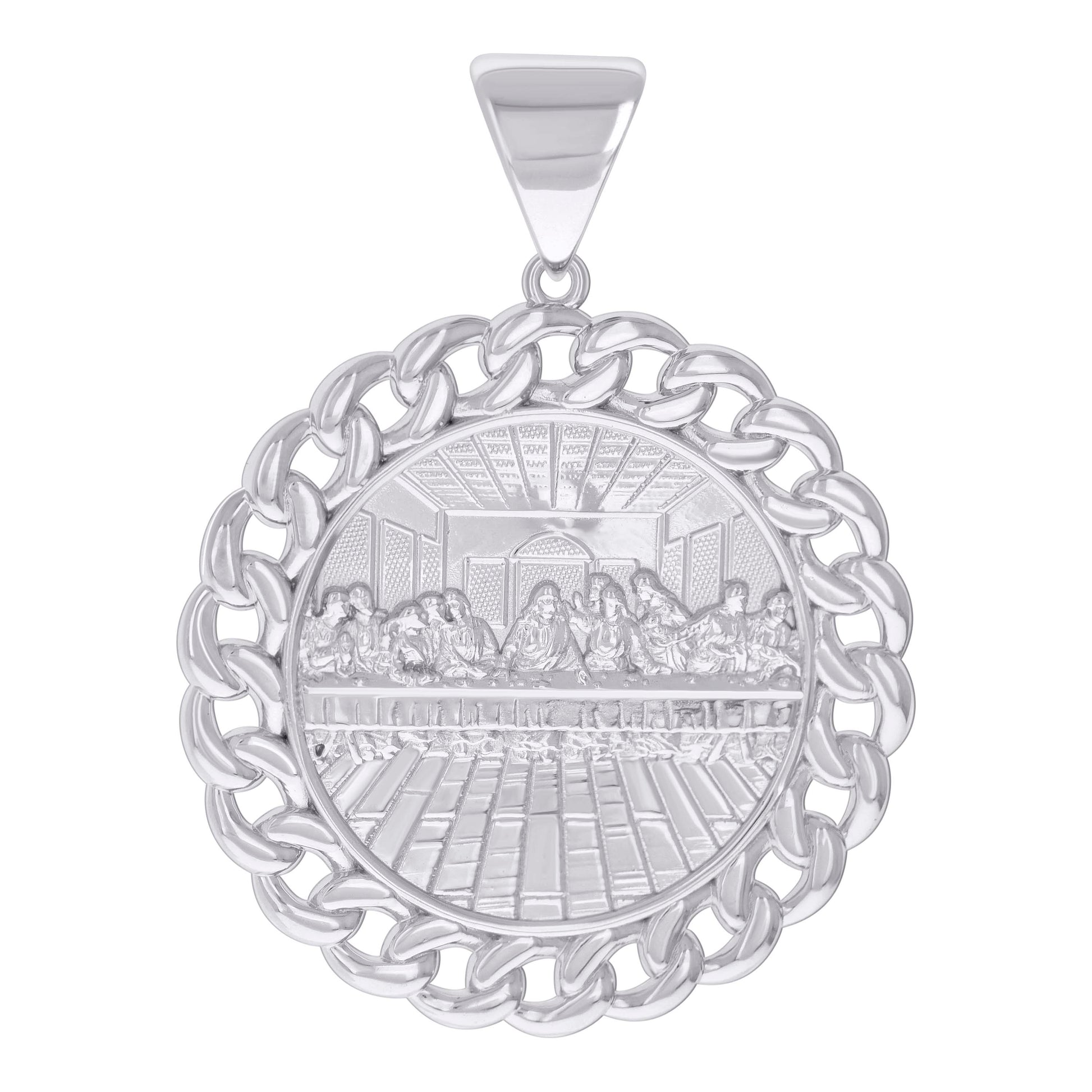 925 Sterling Silver Mens Cuban Border Last Supper Religious Charm Pendant