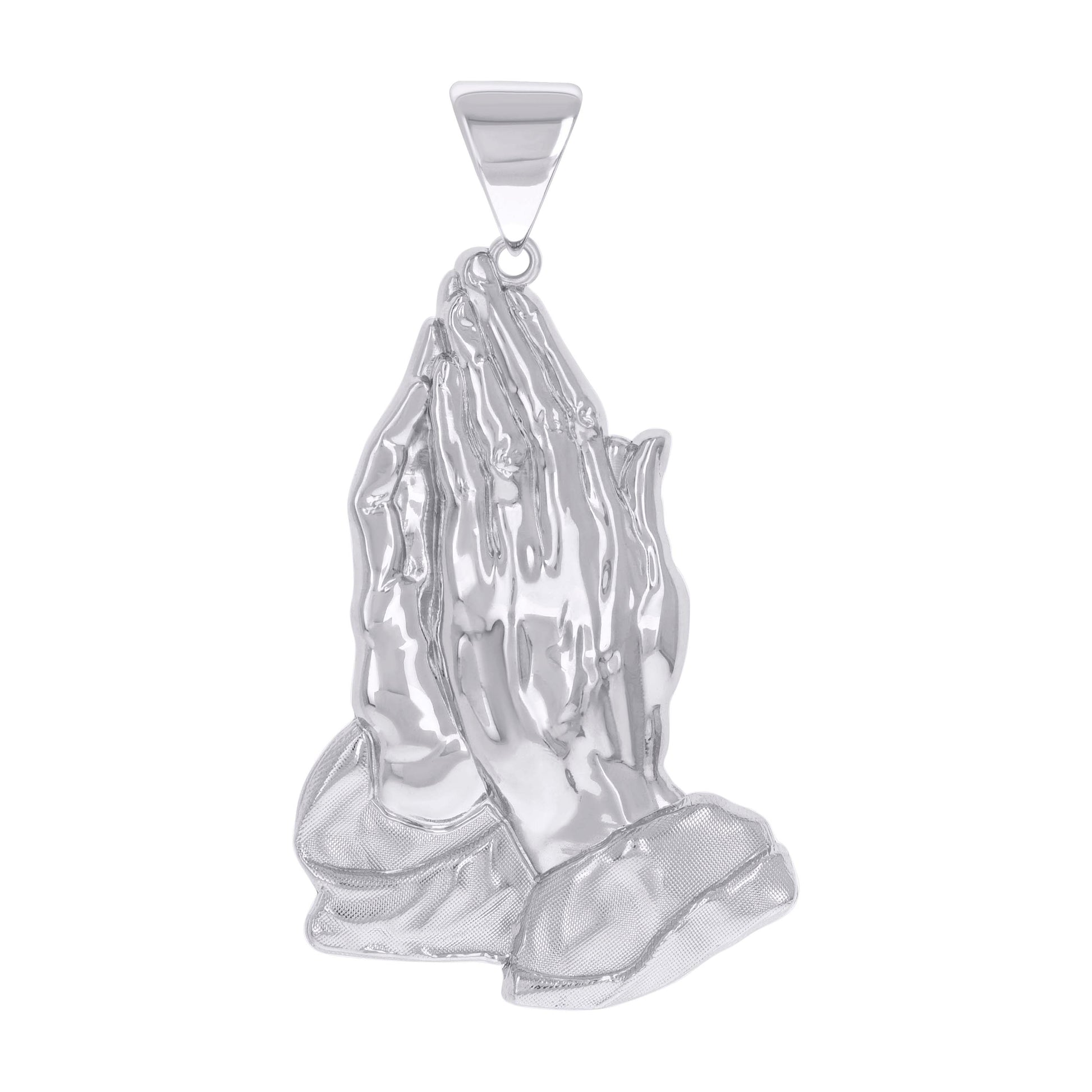 925 Sterling Silver Mens Praying Hands Symbol Religious Charm Pendant