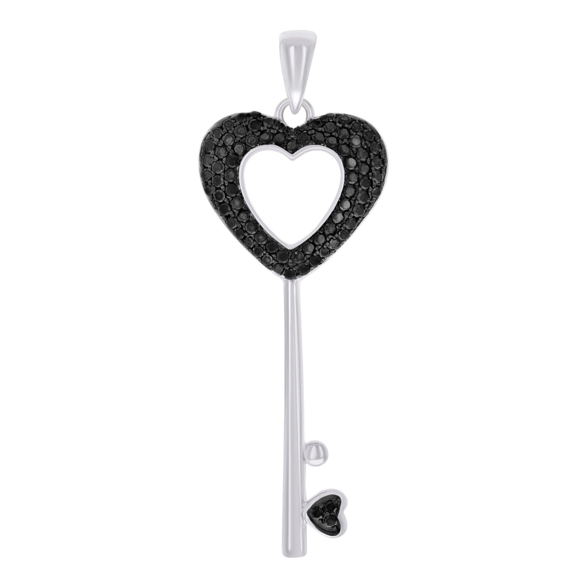 925 Sterling Silver Black-tone Womens Black Cubic-Zirconia Heart Key Lock & Key Charm Pendant