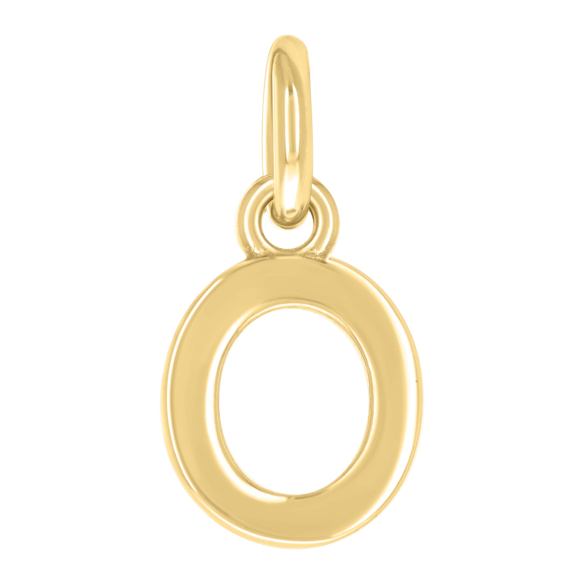 925 Sterling Silver Yellow-tone Unisex Initial Small Alphabet O Charm Pendant