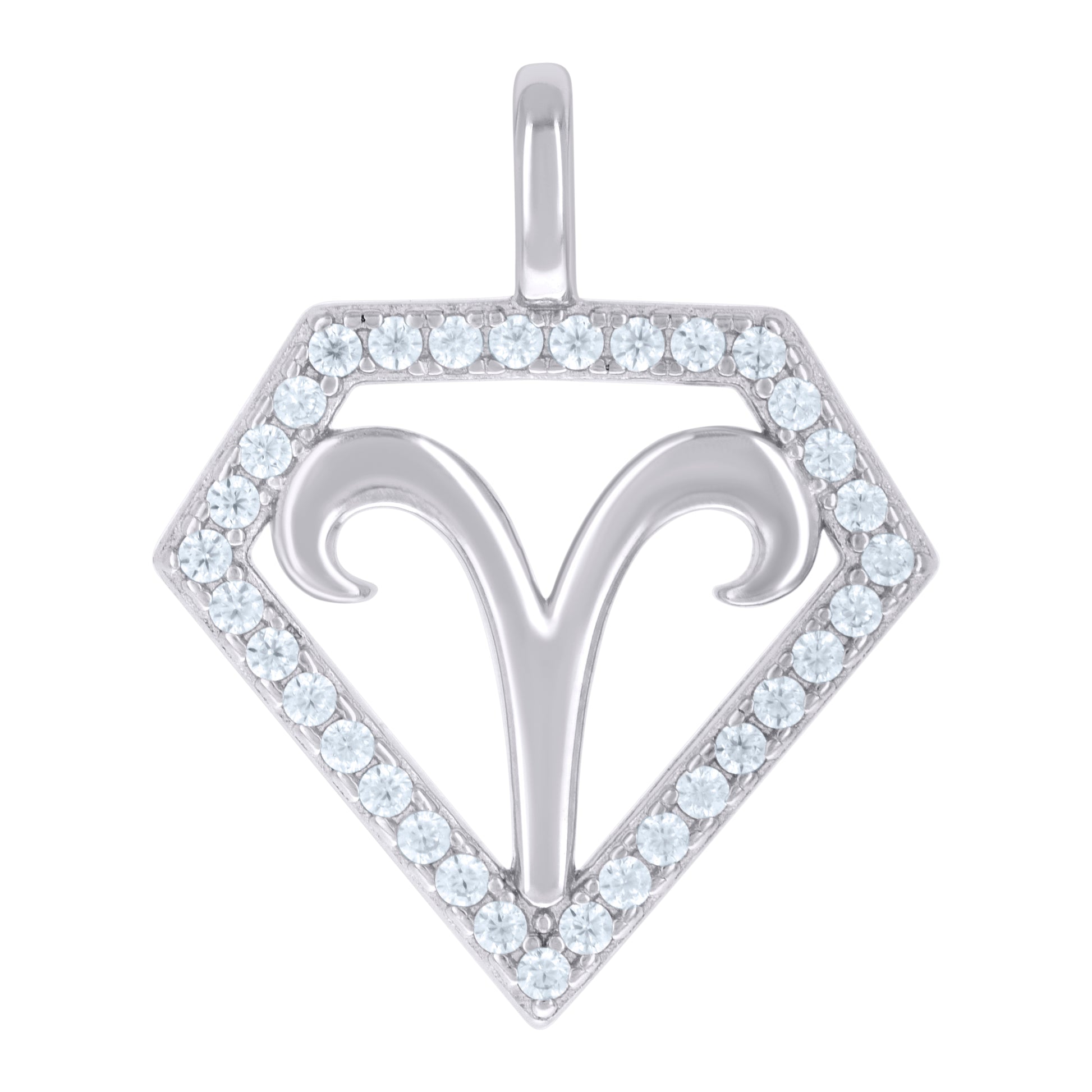 925 Sterling Silver Unisex Cubic-Zirconia Aries Zodiac Sign Charm Pendant