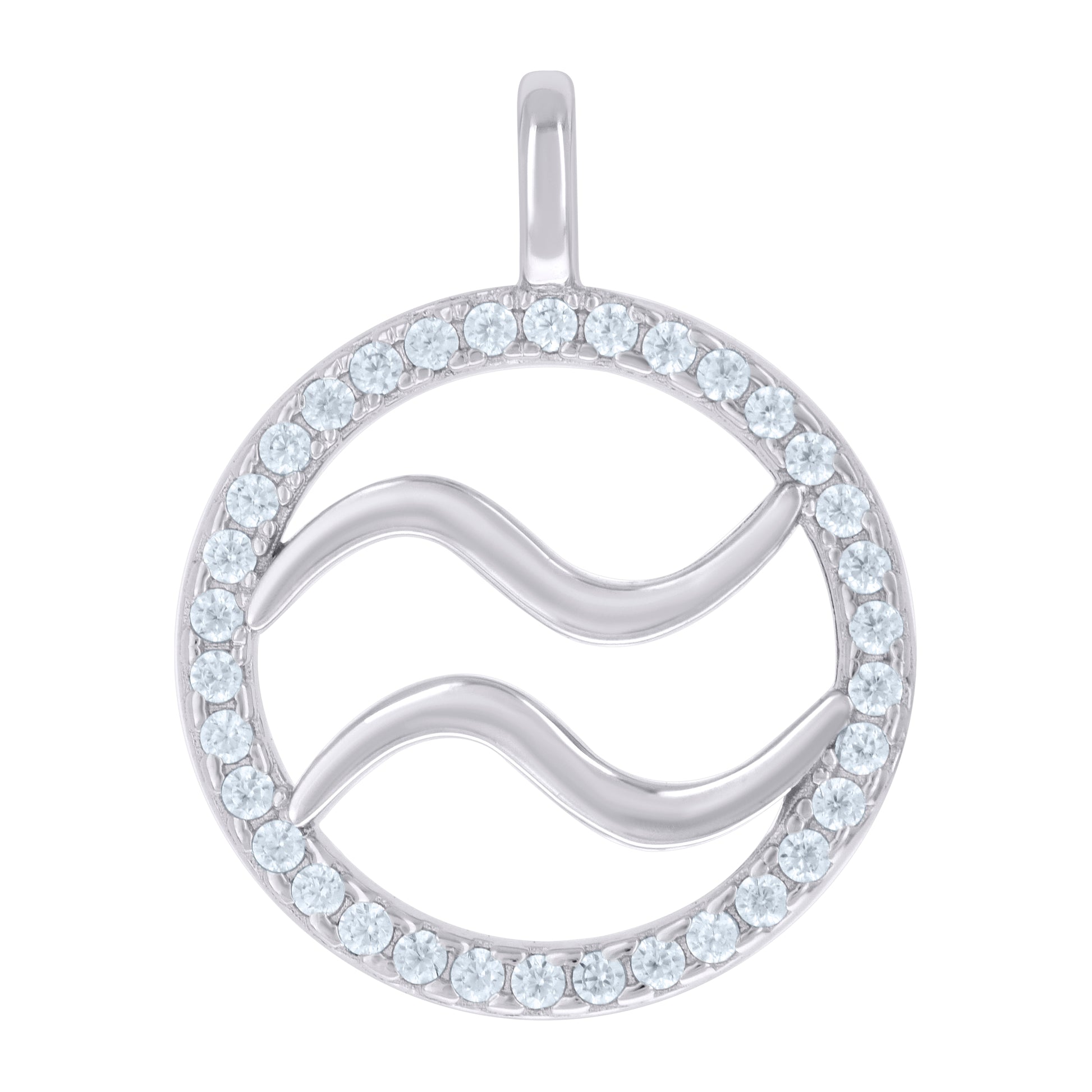 925 Sterling Silver Unisex Cubic-Zirconia Aquarius Zodiac Sign Charm Pendant