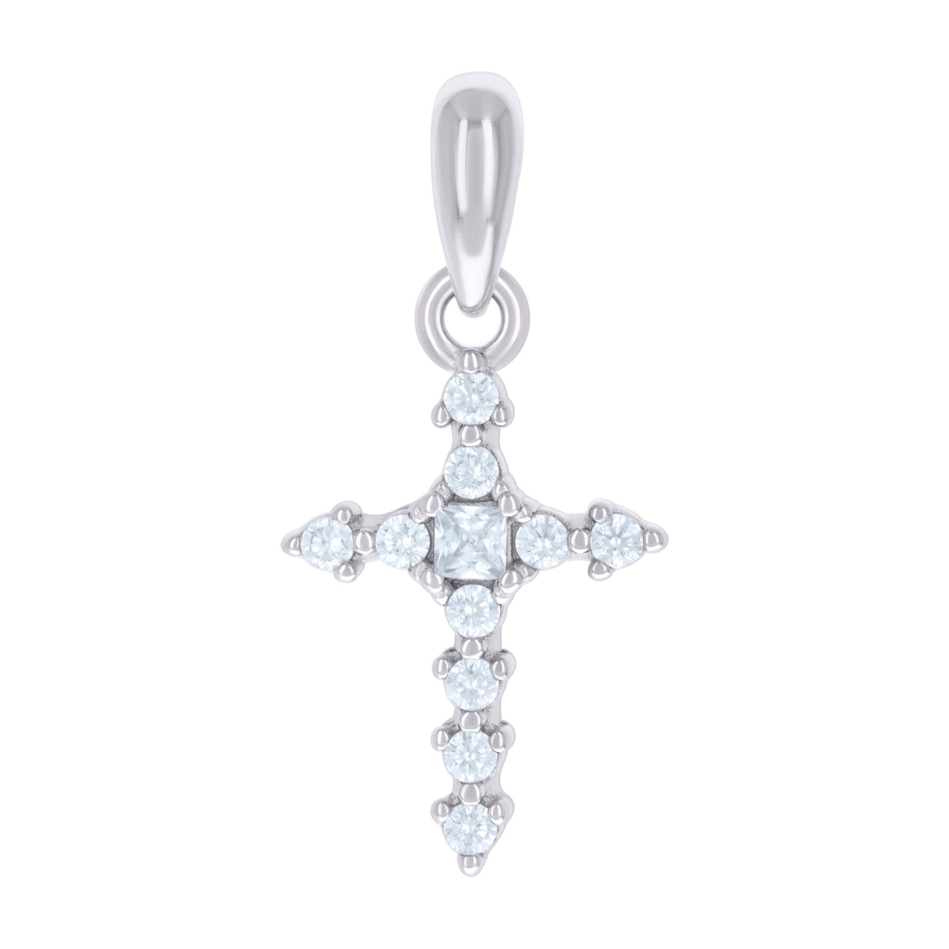 925 Sterling Silver Womens Princess-Cut Round Cubic-Zirconia Cross Religious Charm Pendant