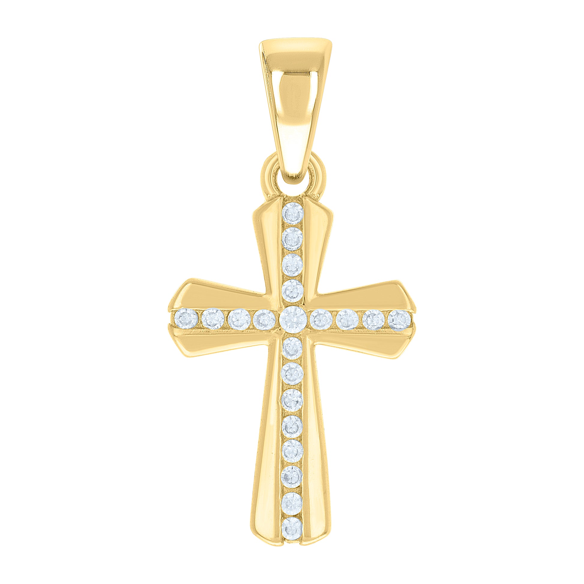925 Sterling Silver Yellow-tone Unisex Round Cubic-Zirconia Cross Religious Charm Pendant