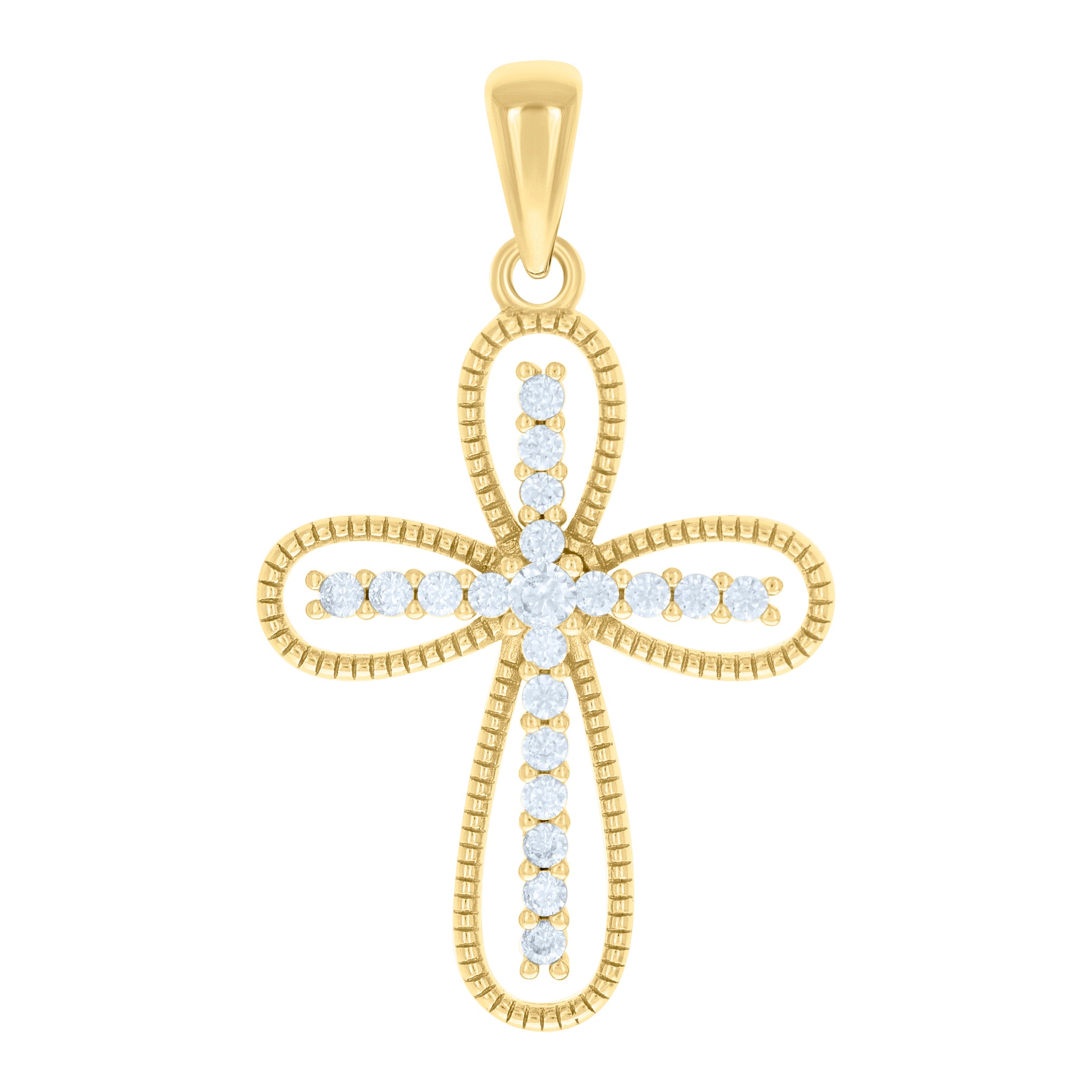 925 Sterling Silver Yellow-tone Unisex Round Cubic-Zirconia Cross Religious Charm Pendant