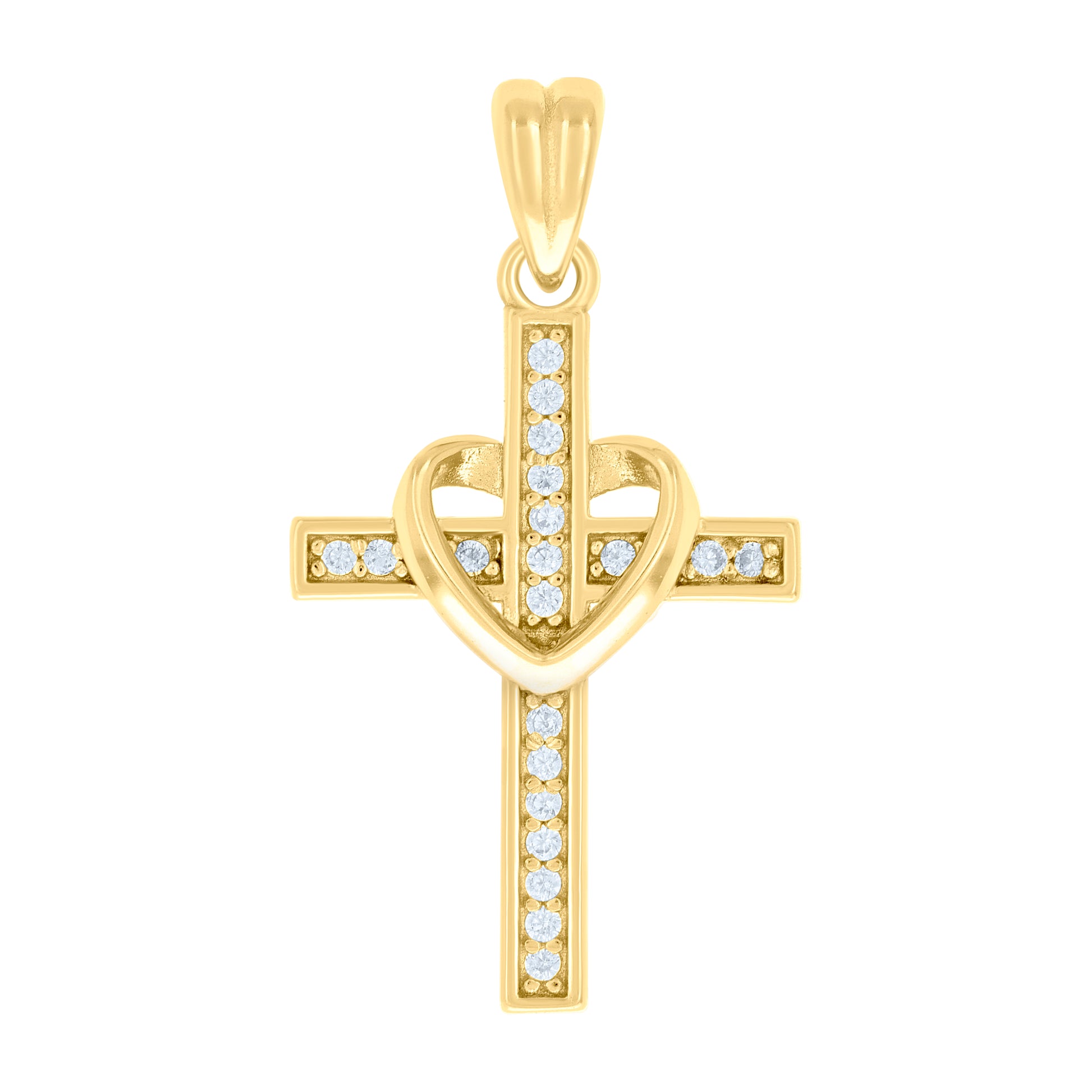 925 Sterling Silver Yellow-tone Unisex Round Cubic-Zirconia Heart Cross Religious Charm Pendant