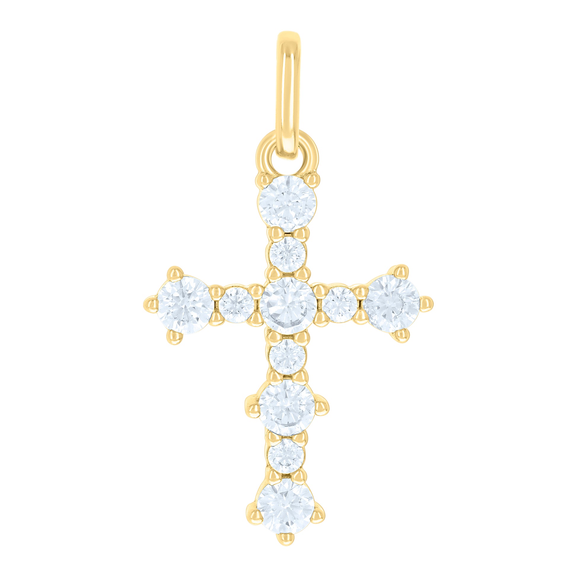 925 Sterling Silver Yellow-tone Unisex Round Cubic-Zirconia Cross Religious Charm Pendant