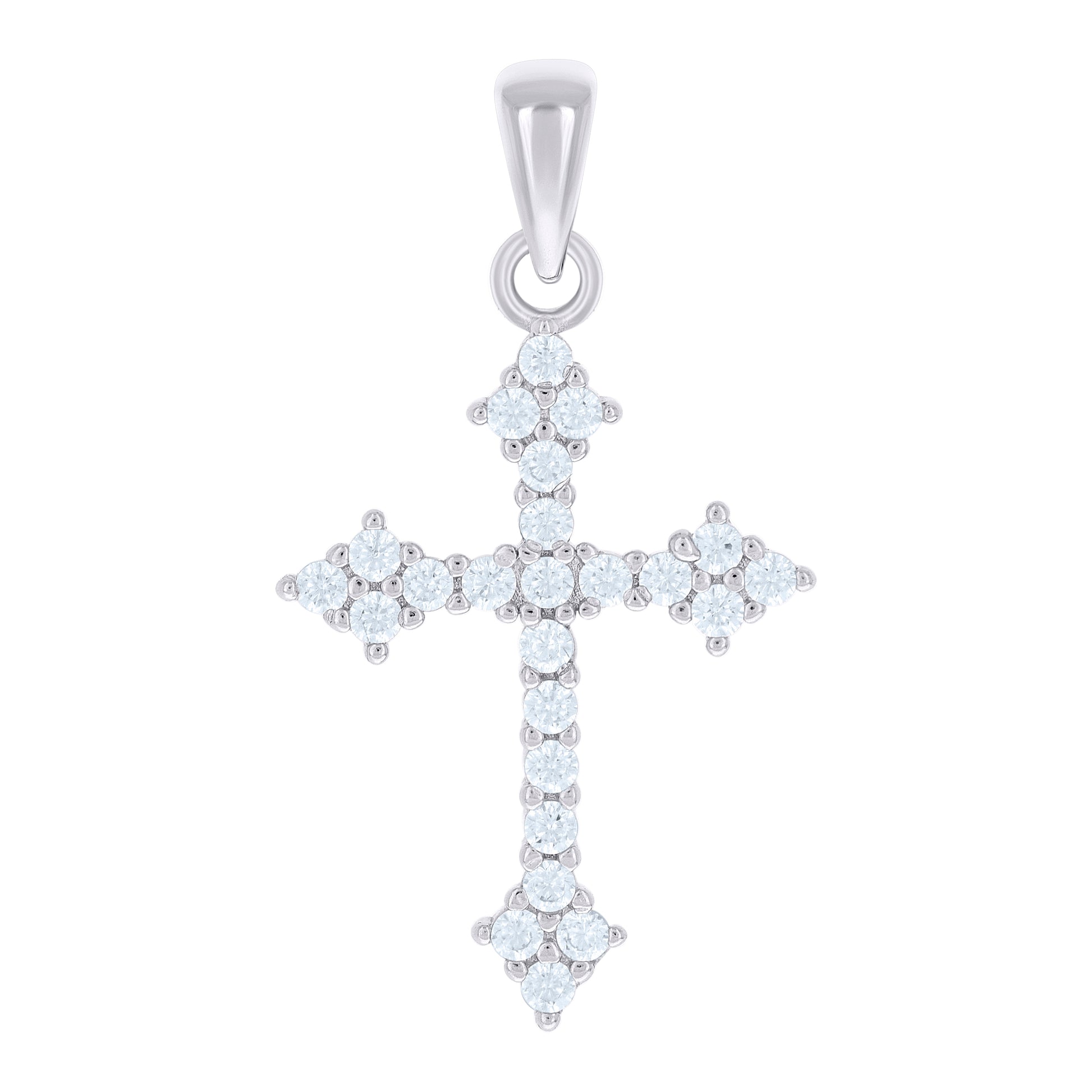 925 Sterling Silver Unisex Cubic-Zirconia Cross Religious Charm Pendant
