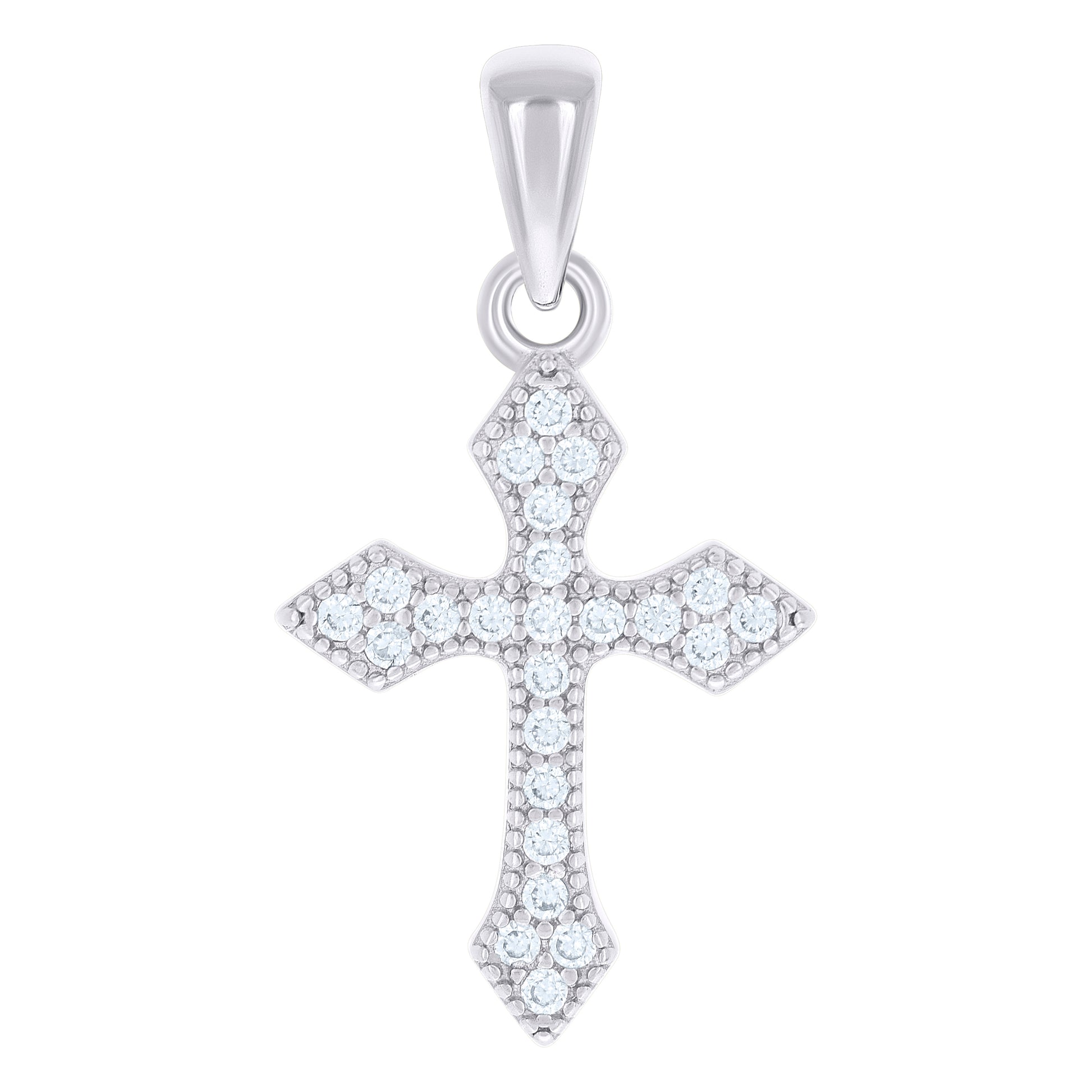 925 Sterling Silver Unisex Cubic-Zirconia Cross Religious Charm Pendant