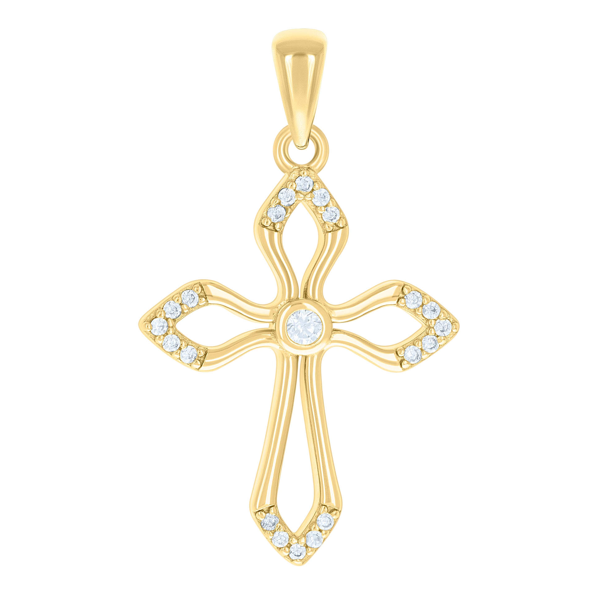 925 Sterling Silver Yellow-tone Unisex Cubic-Zirconia Cross Religious Charm Pendant