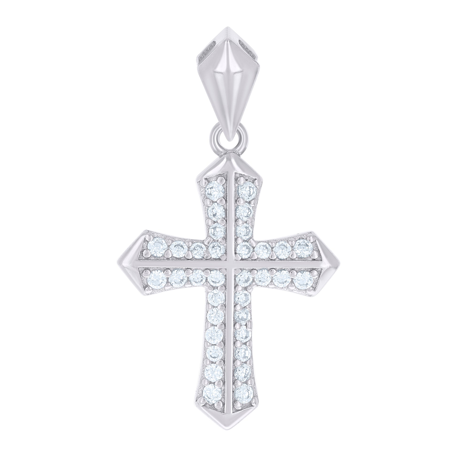 925 Sterling Silver Unisex Cubic-Zirconia Cross Religious Charm Pendant