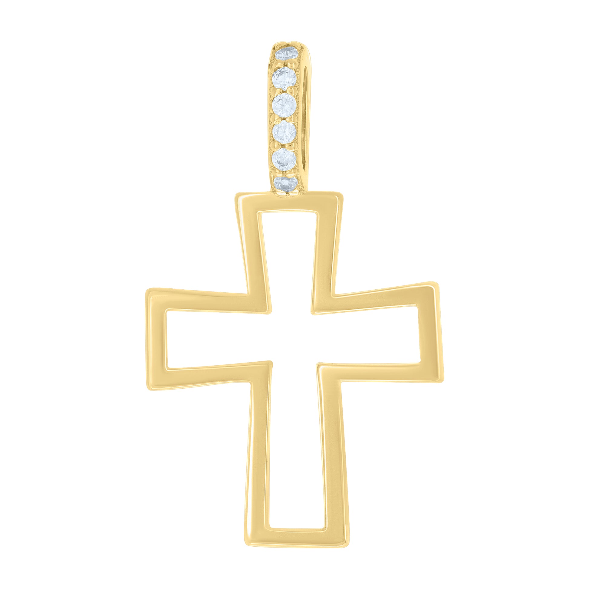 925 Sterling Silver Yellow-tone Unisex Cubic-Zirconia Cross Religious Charm Pendant