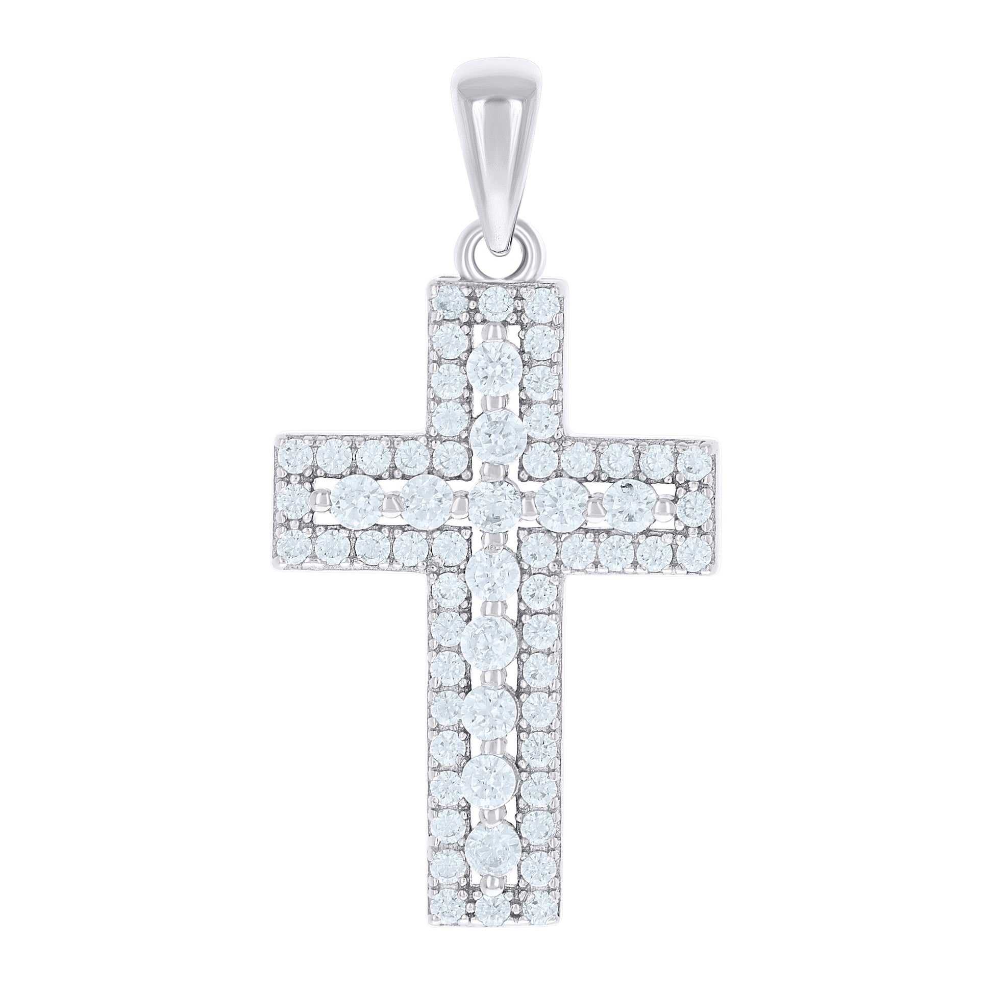 925 Sterling Silver Unisex Cubic-Zirconia Cross Religious Charm Pendant