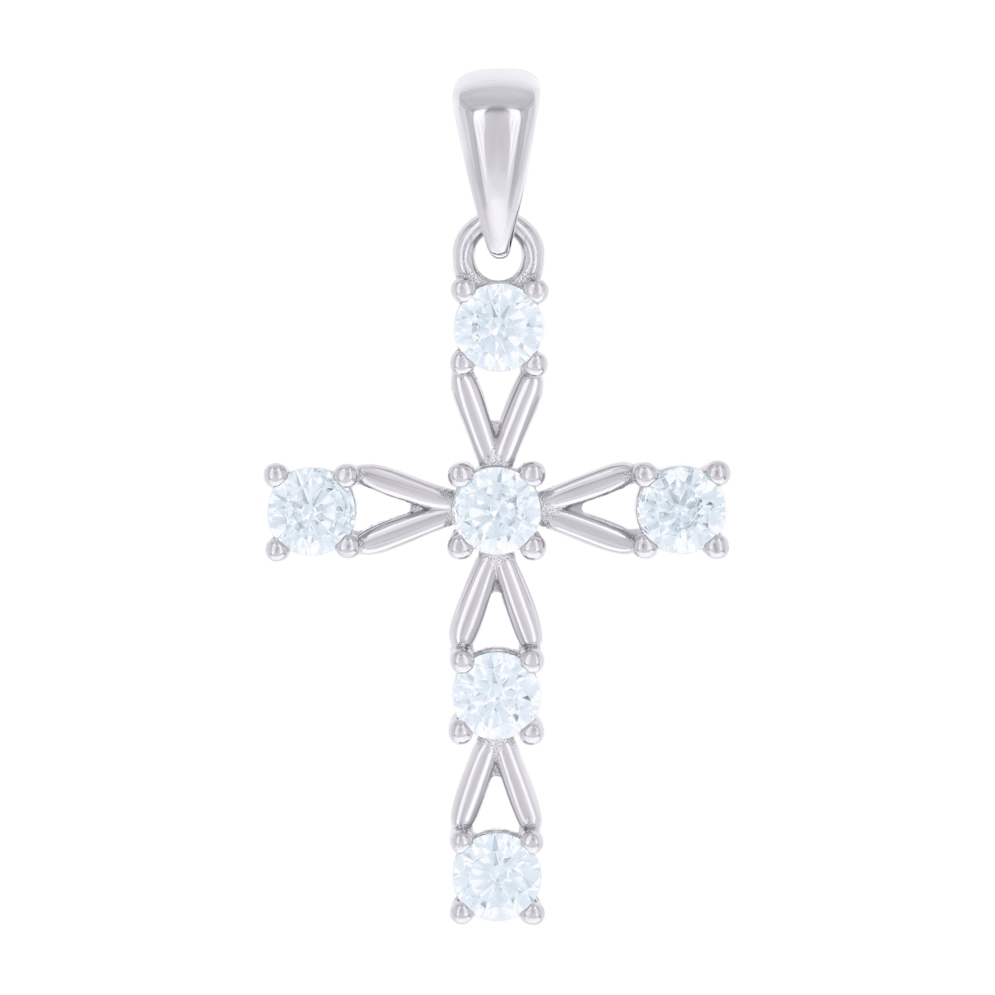 925 Sterling Silver Unisex Cubic-Zirconia Cross Religious Charm Pendant