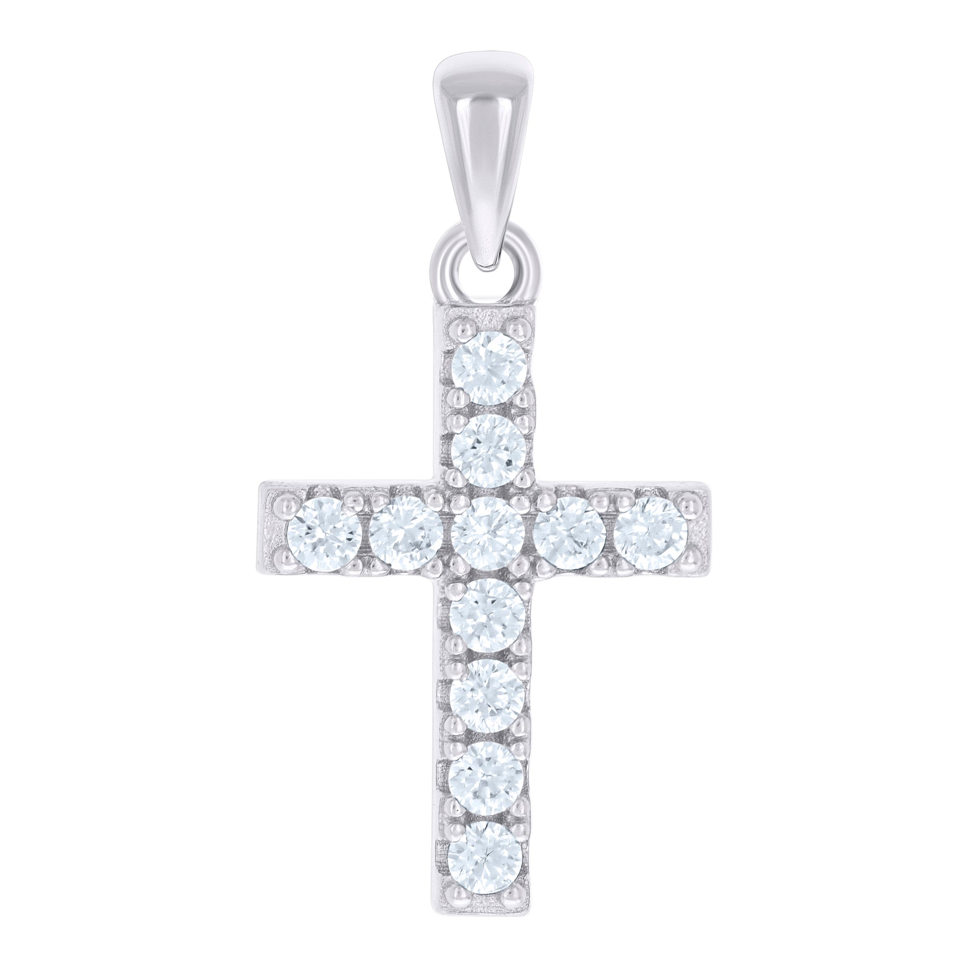 925 Sterling Silver Unisex Cubic-Zirconia Cross Religious Charm Pendant