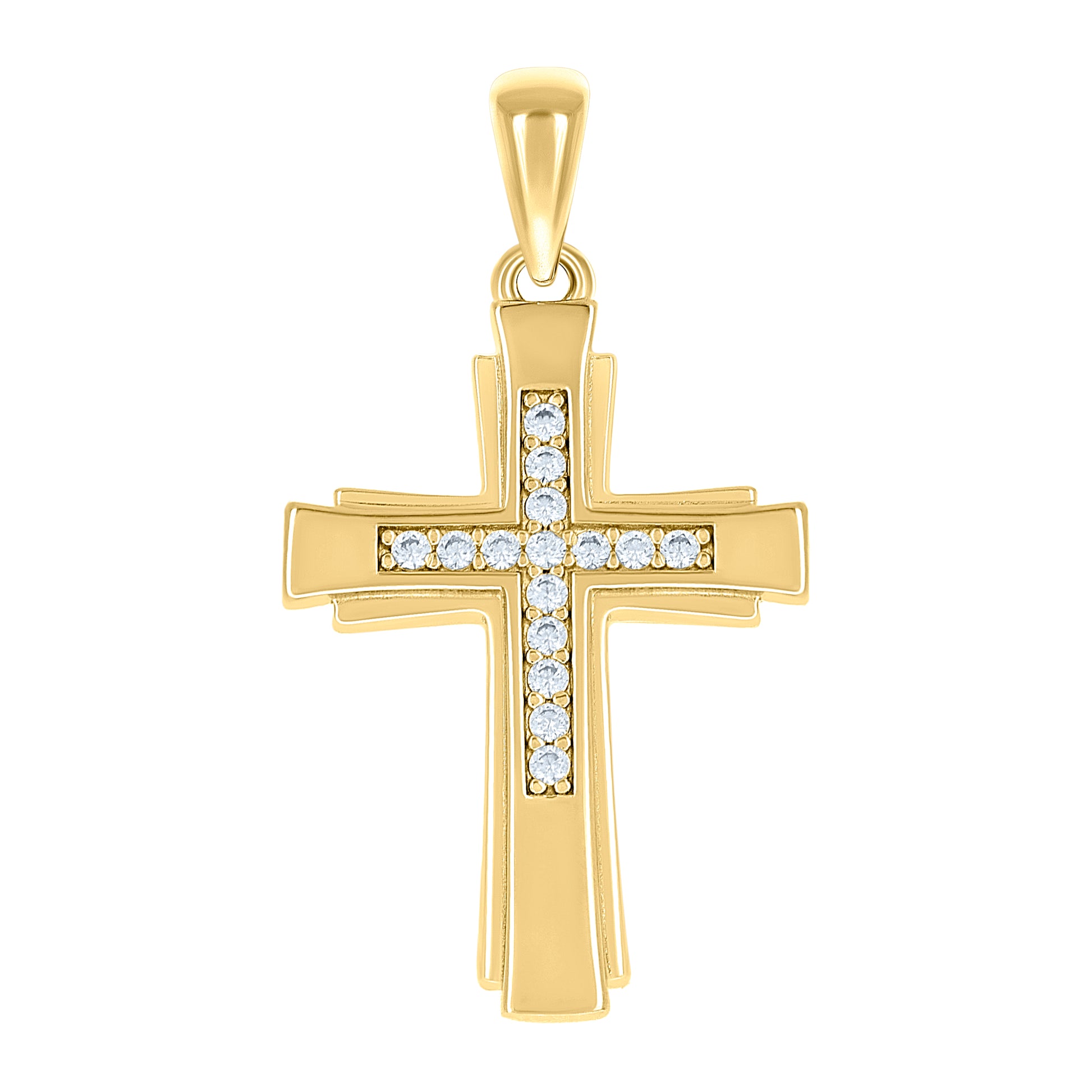925 Sterling Silver Yellow-tone Unisex Cubic-Zirconia Cross Religious Charm Pendant