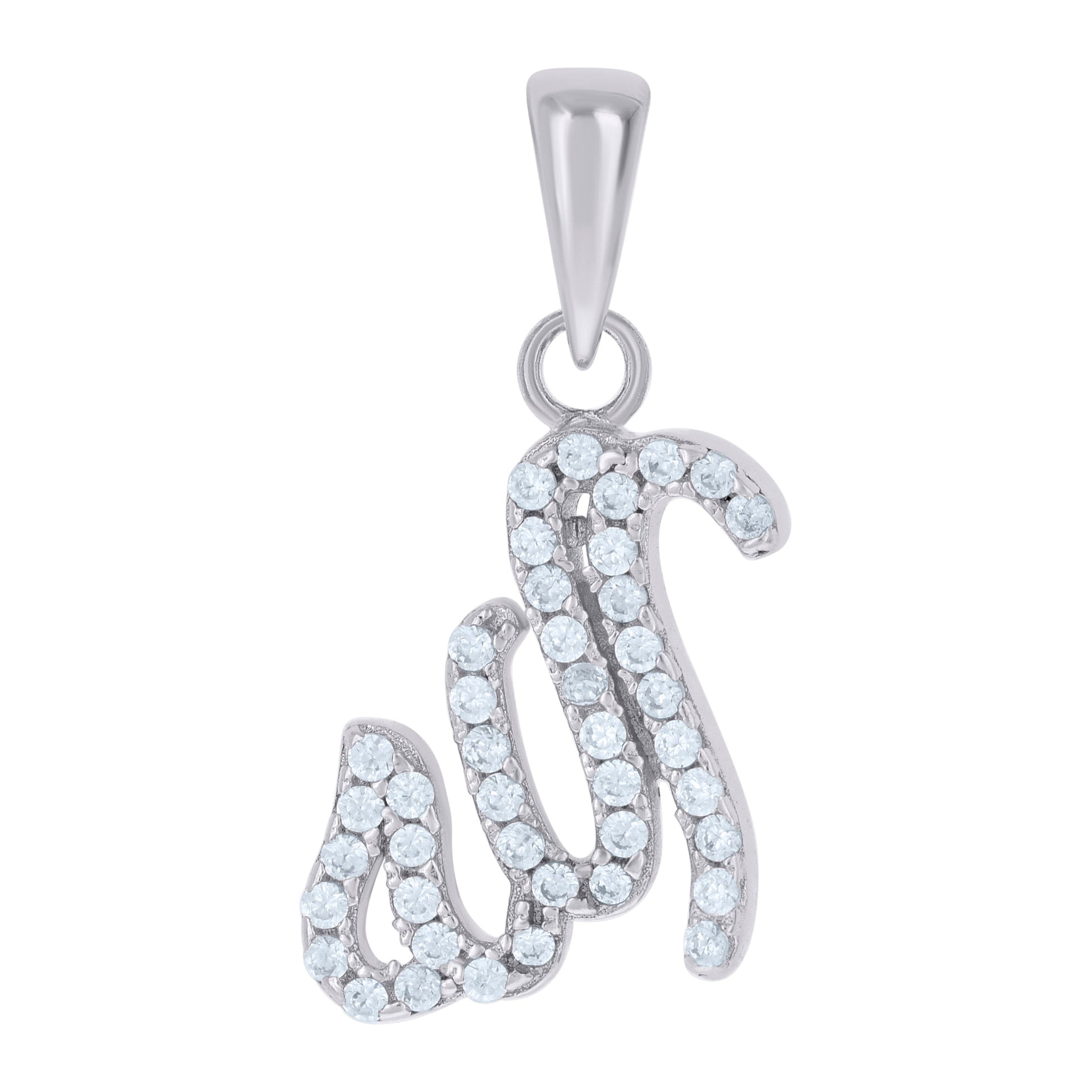 925 Sterling Silver Unisex Cubic Zirconia Allah Religious Charm Pendant