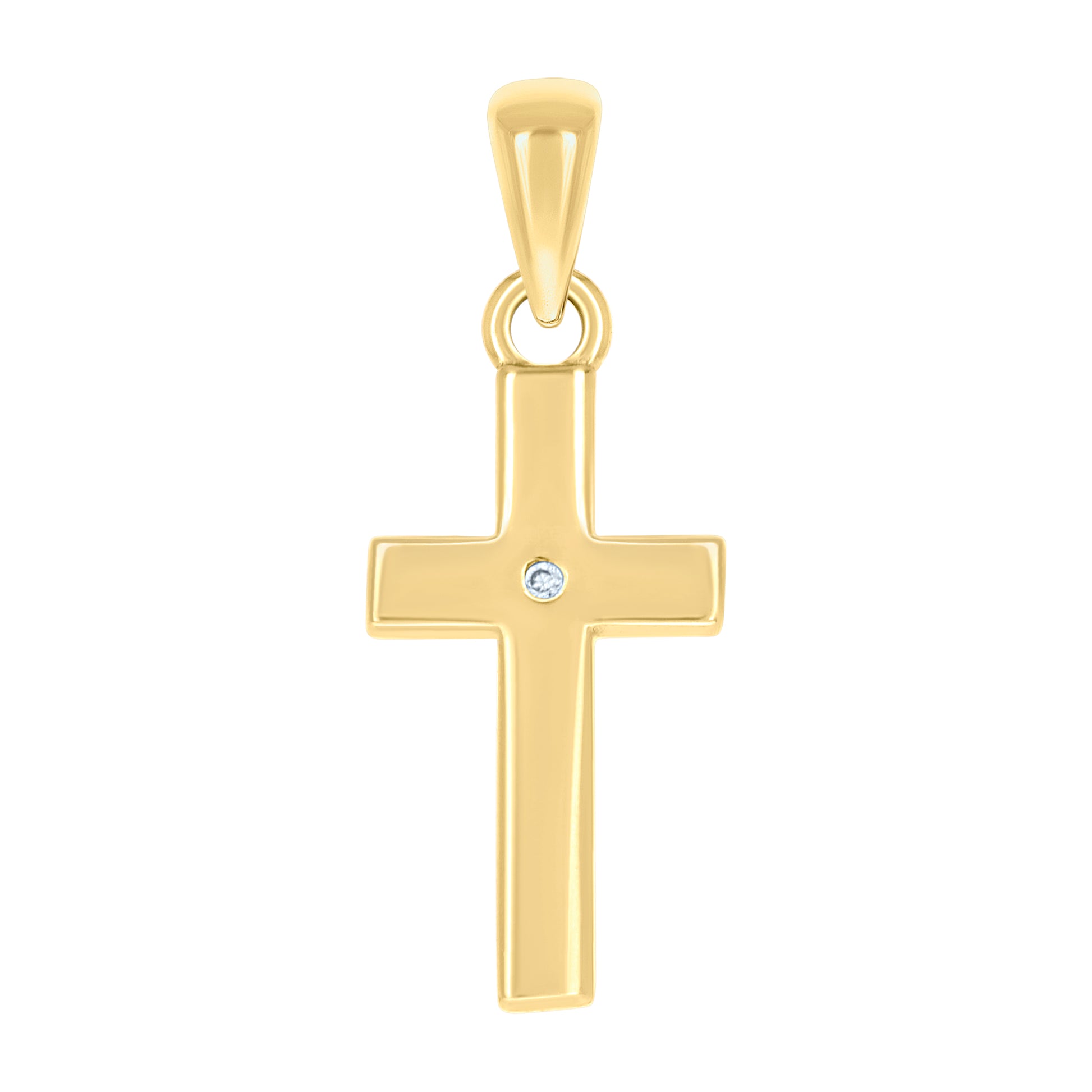 925 Sterling Silver Yellow-tone Unisex Cubic-Zirconia Cross Religious Charm Pendant