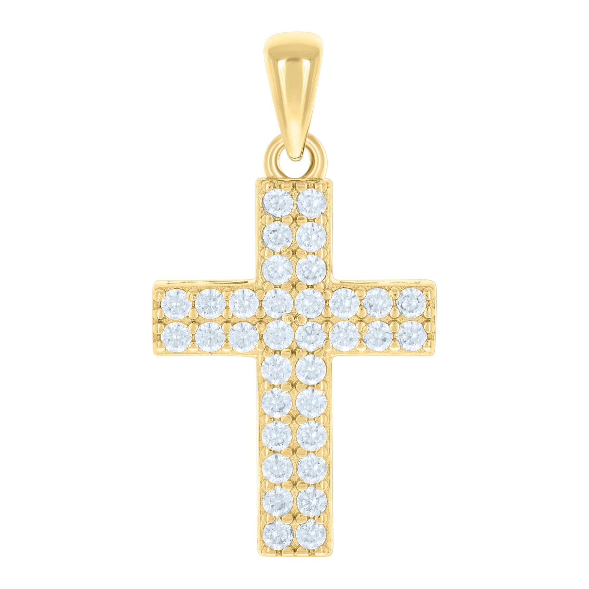925 Sterling Silver Yellow-tone Unisex Cubic-Zirconia Cross Religious Charm Pendant