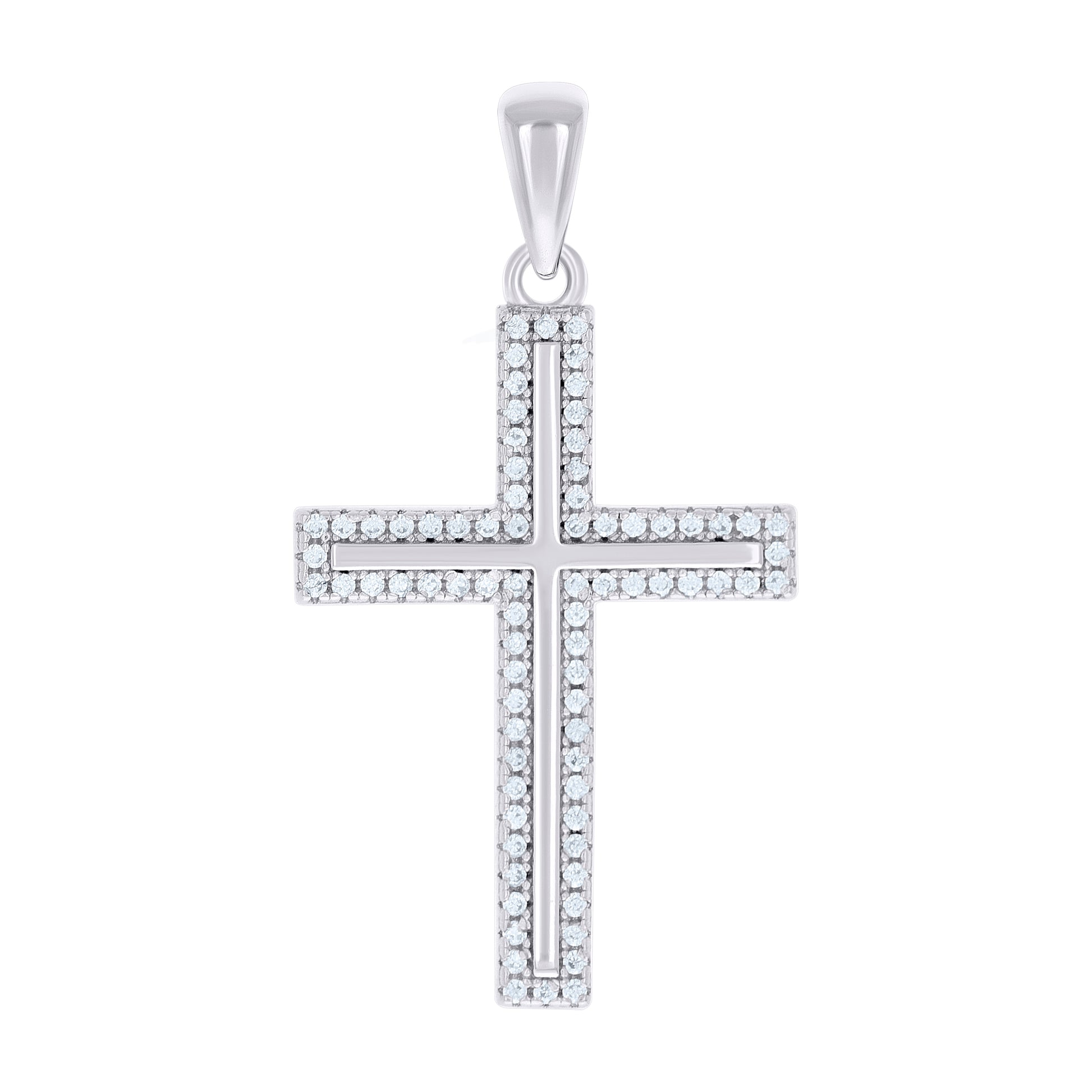 925 Sterling Silver Unisex Cubic-Zirconia Cross Religious Charm Pendant