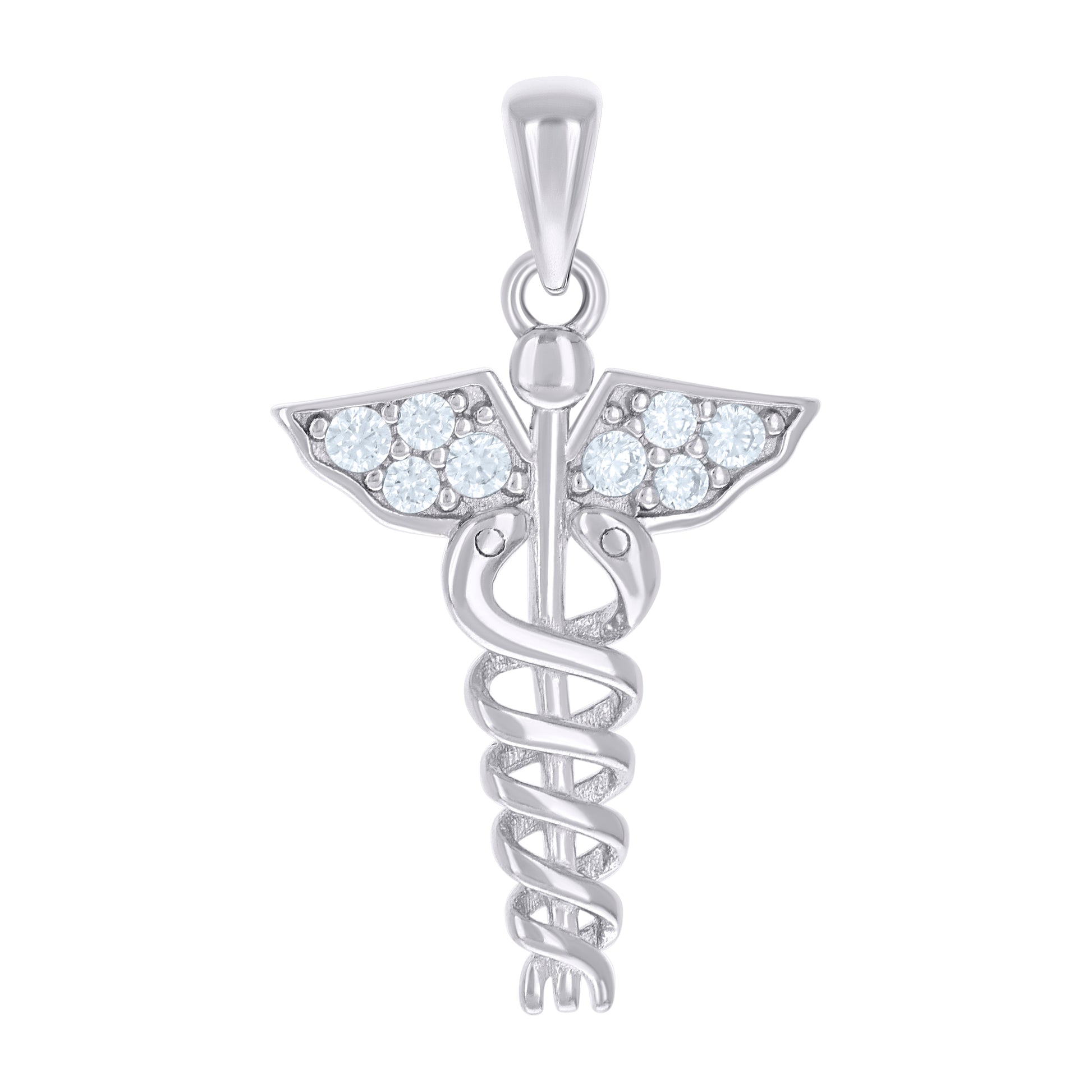 925 Sterling Silver Unisex Cubic-Zirconia Caduceus Medical Symbol Occupation Pendant