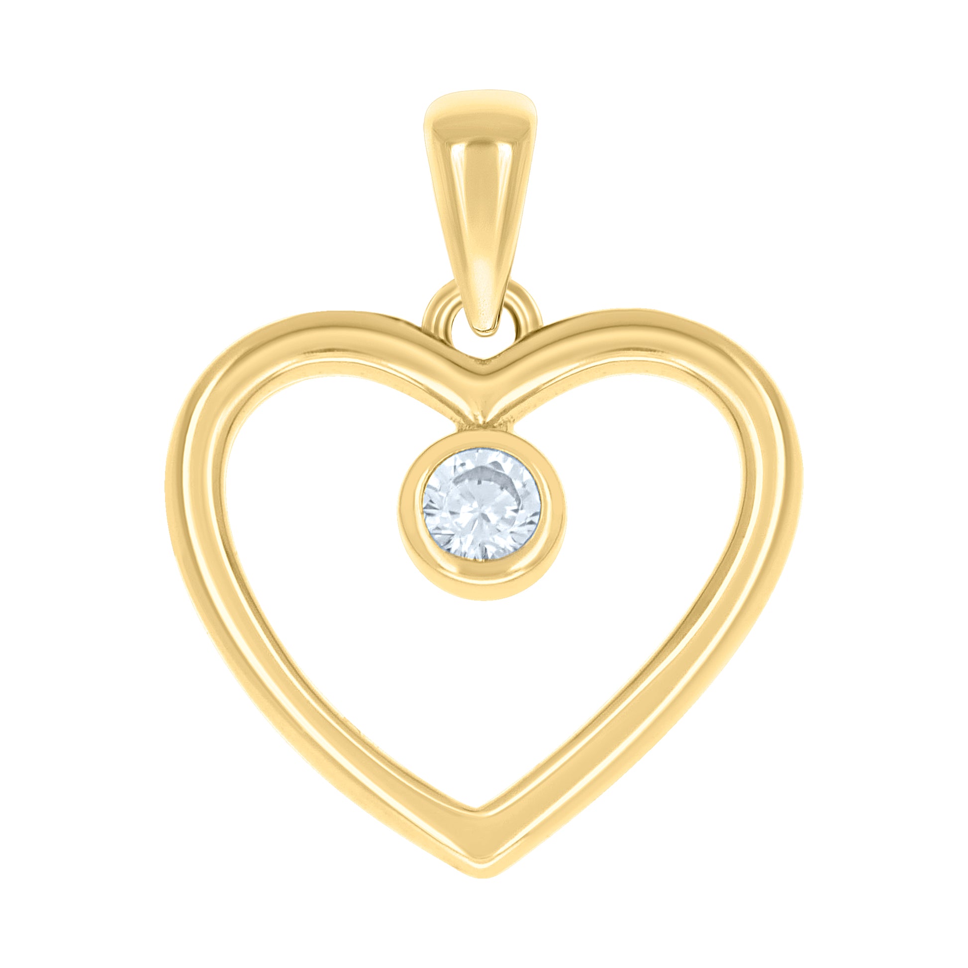 925 Sterling Silver Yellow-tone Womens Cubic-Zirconia Heart Pendant