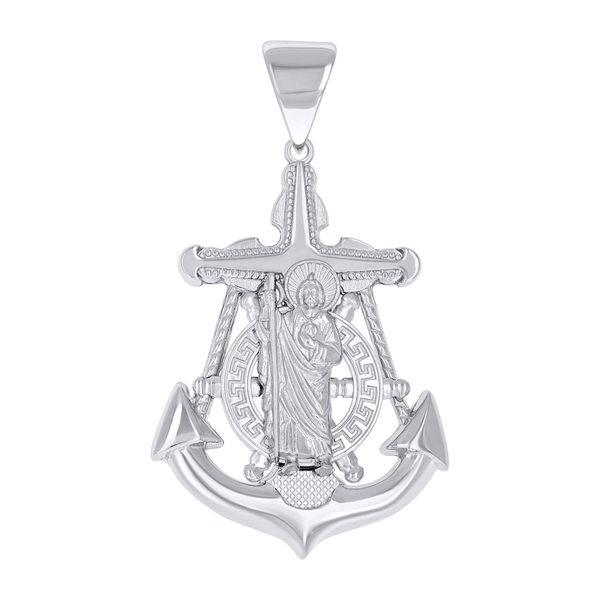 925 Sterling Silver Mens Greek Key Anchor Ship Wheel St, Jude Cross Religious Pendant