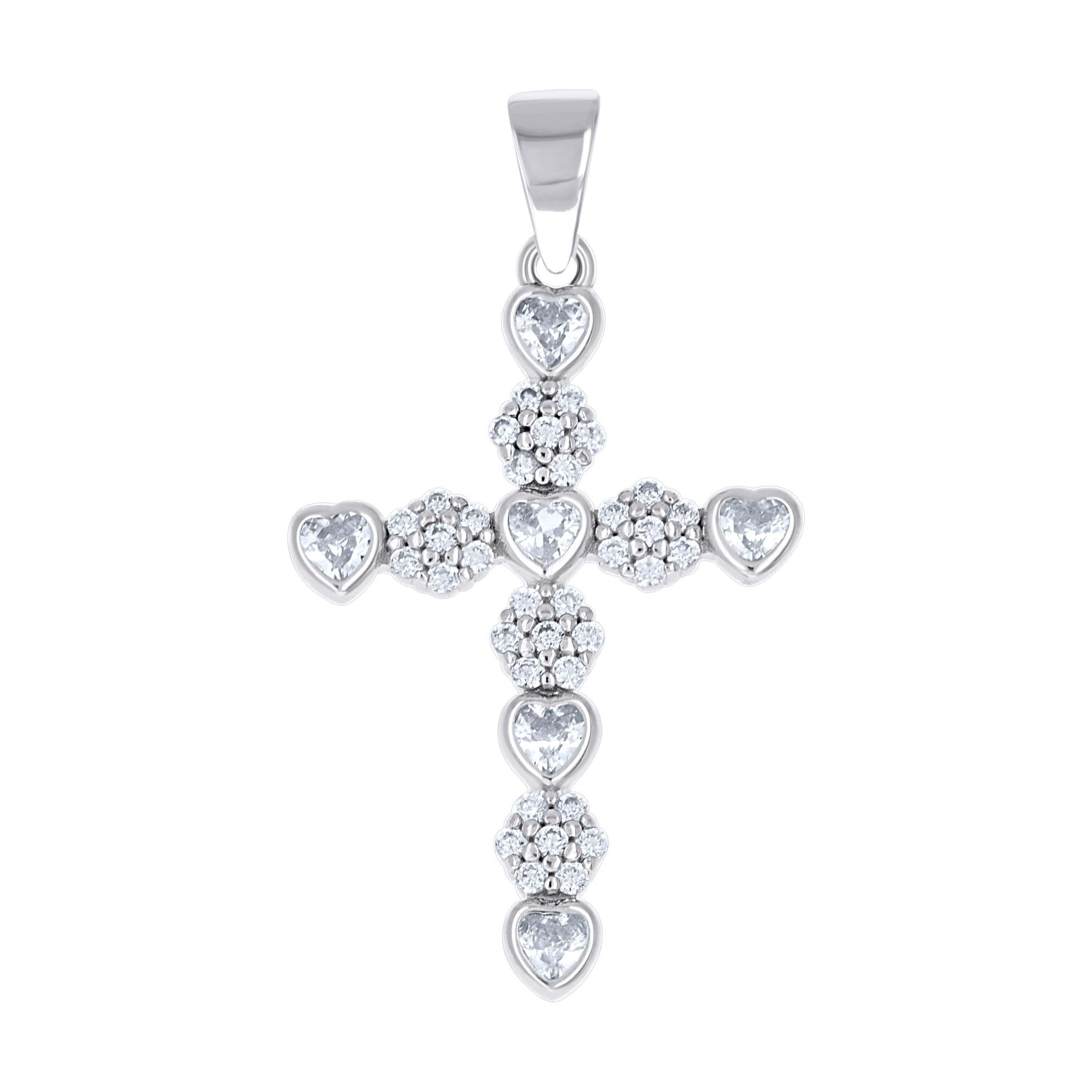 925 Sterling Silver Womens Heart Round Cubic-Zirconia Heart Cross Religious Pendant