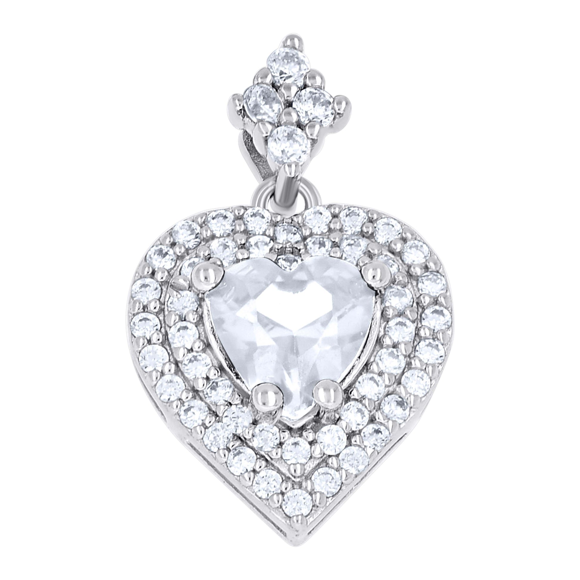 925 Sterling Silver Womens Heart Round Cubic-Zirconia Heart Pendant